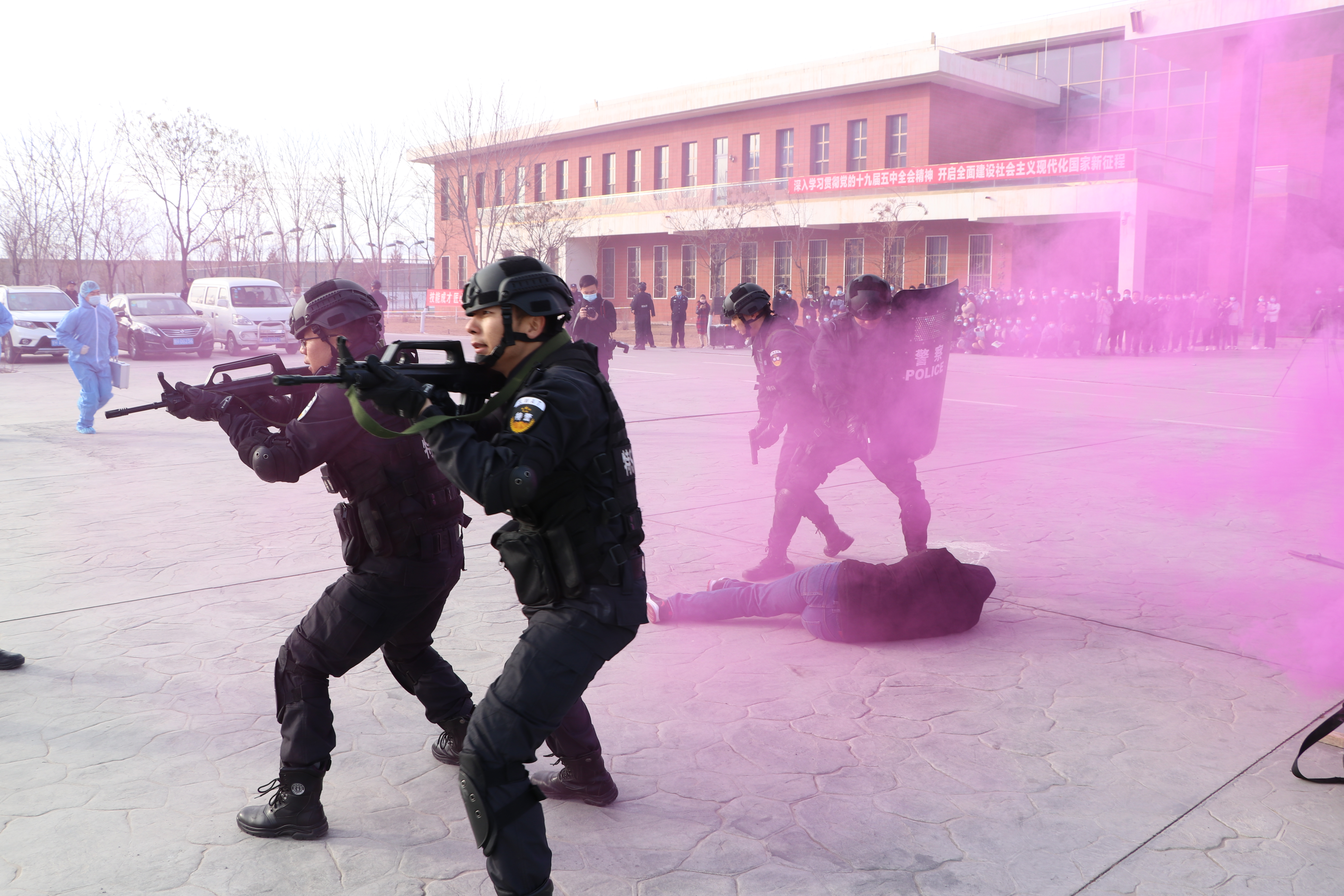 武威市反恐怖辦主任、市公安局常務(wù)副局長康威,市委宣傳部四級調(diào)研員韋國富、市教育局副局長賈玉玲、市應(yīng)急管理局副局長范鵬飛、市衛(wèi)健委副主任張芳、武威職業(yè)學(xué)院副院長王守云、市公安局副局長、涼州區(qū)反恐怖工作領(lǐng)導(dǎo)小組副組長、涼州區(qū)公安局局長劉武德出席了本次活動。涼州區(qū)相關(guān)單位反恐工作負(fù)責(zé)同志及市、區(qū)公安機(jī)關(guān)相關(guān)警種、消防救援支隊(duì)隊(duì)員、武威市人民醫(yī)院醫(yī)務(wù)人員及學(xué)院師生300余人參加啟動儀式。