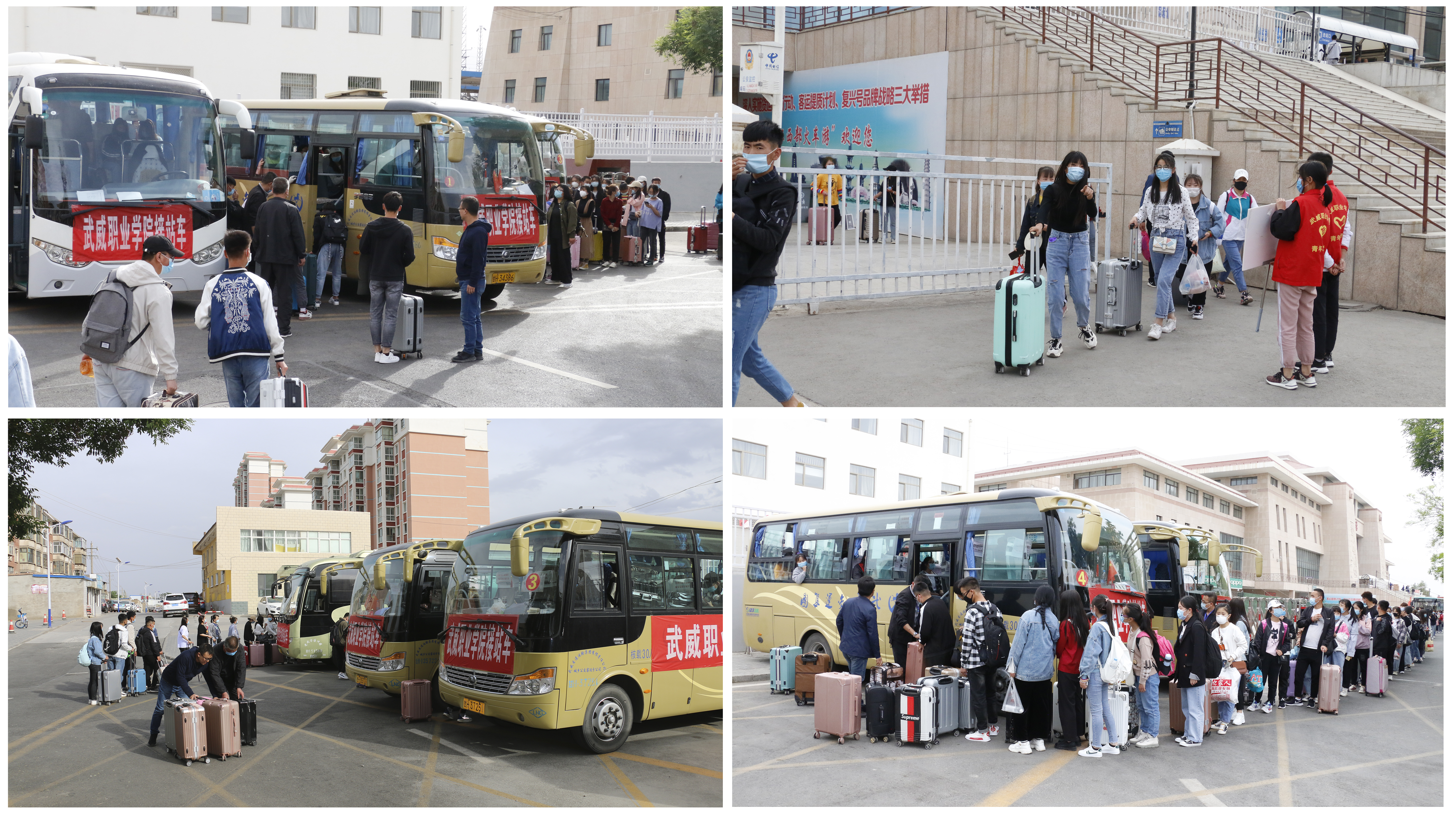 3月6日至7日,是學(xué)院2021年春季學(xué)期開(kāi)學(xué)的日子,為進(jìn)一步做好疫情防控常態(tài)化各項(xiàng)工作,保證2019、2020級(jí)學(xué)生健康返校,學(xué)院開(kāi)展2021年春季學(xué)期學(xué)生開(kāi)學(xué)“暖心接站 安全返?!敝驹阜?wù)活動(dòng),學(xué)院安排200余名志愿者、五輛愛(ài)心接站車(chē)在武威火車(chē)站、客運(yùn)中心等四個(gè)接站志愿服務(wù)點(diǎn)上開(kāi)展測(cè)溫登記、消毒、行李搬運(yùn)等志愿服務(wù)活動(dòng),累計(jì)服務(wù)5000余名返校學(xué)生。