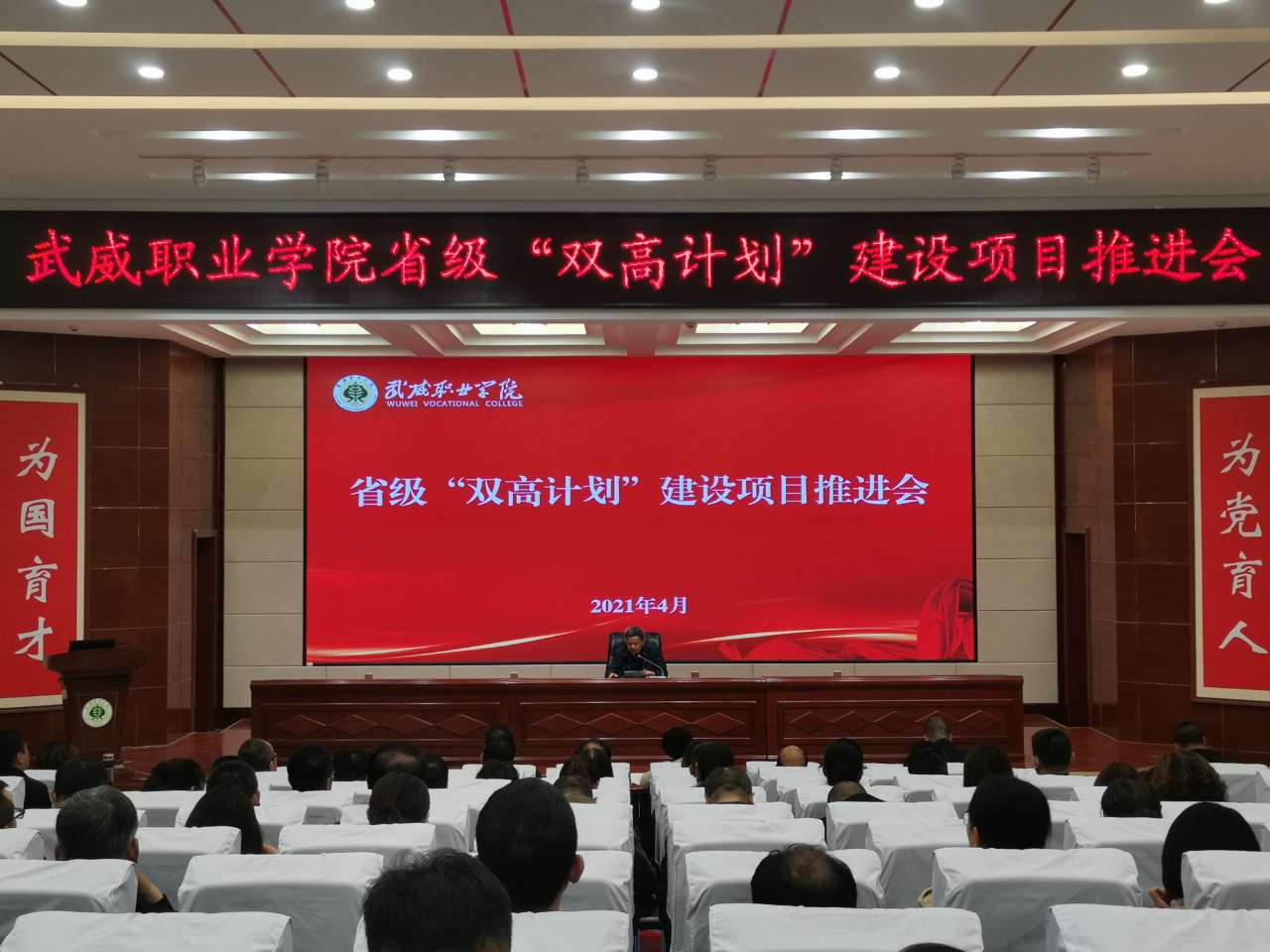 黨委書記、院長趙明在講話中指出,習近平總書記的重要指示和李克強總理的批示,為我們奮力構建高質量職業(yè)教育體系指明了方向。學院成功入選省級“雙高計劃”建設單位,是學院發(fā)展歷程上的又一里程碑,為學院高質量發(fā)展注入了新動能,帶來了新機遇。我們既為前期工作成效感到欣喜,也要認清當前形勢和未來發(fā)展的壓力與緊迫感,抓住這次契機,提升自身硬實力和軟實力。在未來幾年,把“雙高計劃”建設作為學院的中心工作和改革發(fā)展的政治任務。他提出五點工作要求,一是要充分發(fā)揮黨組織的戰(zhàn)斗堡壘作用。以習近平新時代中國特色社會主義思想為指導,加強黨對“雙高計劃”建設項目的全面領導,以一流黨建引領高水平建設,切實把黨建工作與項目建設同部署、同落實、同考評。二是要加強領導,強化責任?!半p高計劃”的建設不能寫在紙上,講在嘴上,而要落實在行動上,所有領導干部要提高擔當意識、服務意識、發(fā)展意識,立足當前,著眼長遠,攻難克堅,為學校“雙高”建設做貢獻。三是要加強融合,提升工作效能。將“雙高計劃”建設與提質培優(yōu)、技能甘肅等重點工作融入日常,同步謀劃、一體推進,確保項目建設有序進行。對標國家高水平院校和高水平專業(yè)群進行高標準謀劃,完善高水平成果培育機制,主動提標、自我加壓,持續(xù)發(fā)力、持續(xù)攻堅,形成更多更好的成果。四是要改革創(chuàng)新,加強績效管理。進一步加強制度建設,持續(xù)創(chuàng)新管理體系、完善管理制度、創(chuàng)新管理辦法,規(guī)范辦事流程,完善績效考核辦法,切實增強績效考核的導向性、方向性、引領性,激發(fā)廣大教職員工參與“雙高計劃”建設的積極性、主動性。五是健全督導機制,加強監(jiān)管。通過開展定期或不定期、形式多樣的督查工作,切實加強管理,推動任務落實。