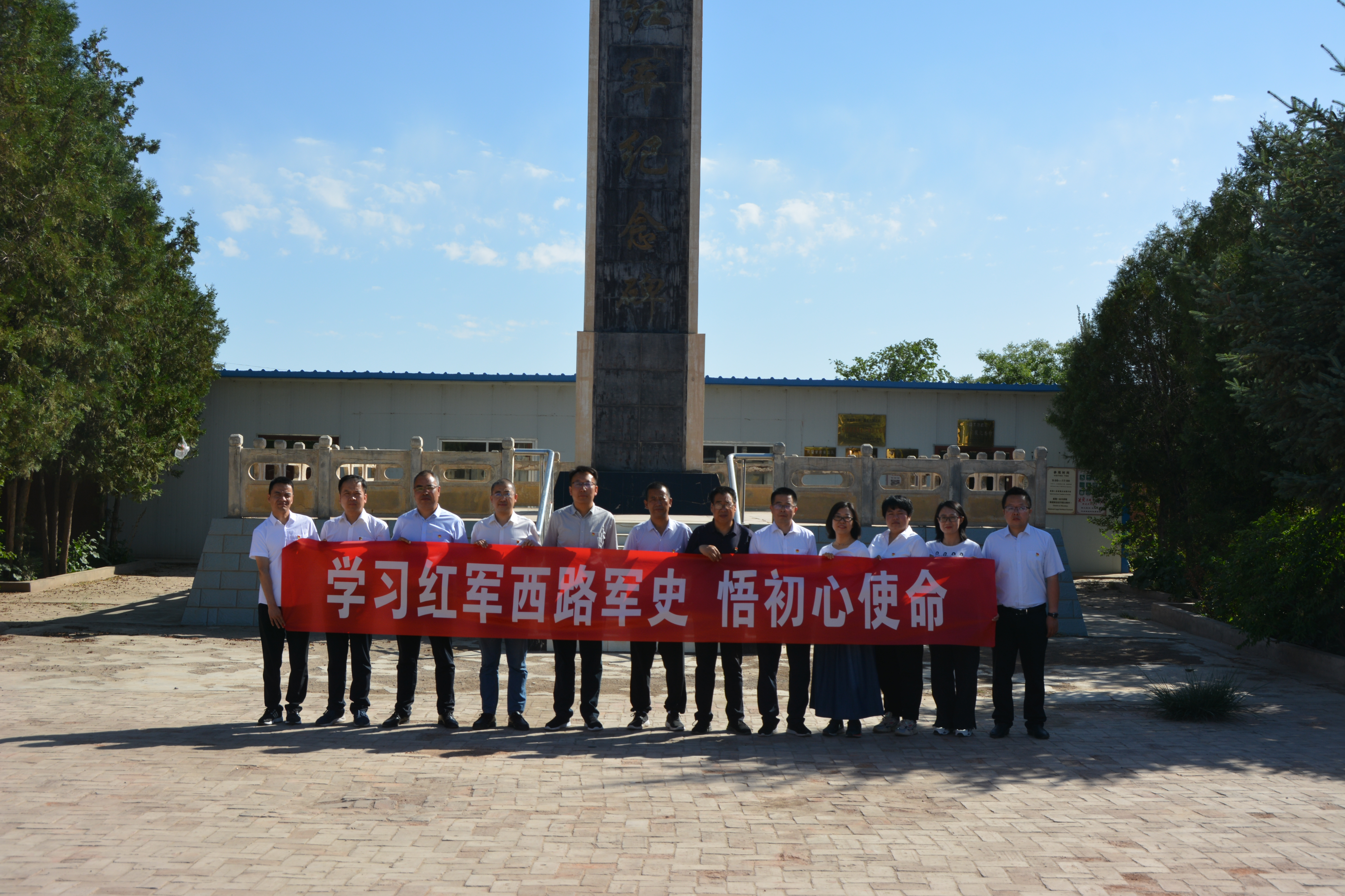 全體黨員在涼州戰(zhàn)役紀(jì)念館西路軍烈士紀(jì)念碑前,面對(duì)黨旗進(jìn)行了莊嚴(yán)的重溫入黨誓詞宣誓儀式。儀式結(jié)束后,梁忠、申賓德向紀(jì)念碑敬獻(xiàn)花籃,全體黨員向烈士紀(jì)念碑默哀鞠躬,寄托哀思。隨后,全體黨員在講解人員的引領(lǐng)下,走進(jìn)西路軍烈士紀(jì)念館展廳,隨著講解員的講解,通過(guò)一張張彌足珍貴的史料照片、一段段可歌可泣的歷史場(chǎng)景、一個(gè)個(gè)動(dòng)人心魄的悲壯故事,回顧了西路軍不畏艱險(xiǎn)、浴血奮戰(zhàn)的光輝歷程,真切感受到革命先烈為共產(chǎn)主義的遠(yuǎn)大理想和革命事業(yè)奮斗不息的偉大情懷。