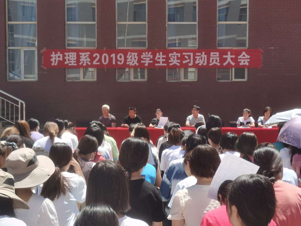 為進一步做好實習生實習下點前的思想工作,增強我系2019級學生對跟崗實習工作的認識,提高實習工作的管理水平, 7月3日上午,護理系在明遠樓北廣場組織召開2019級學生實習動員大會。護理系黨總支書記張建輝、主任韓曉萍、系輔導員、班主任及2019級800余名學生參加了會議。會議由護理系分團委書記楊杰主持。