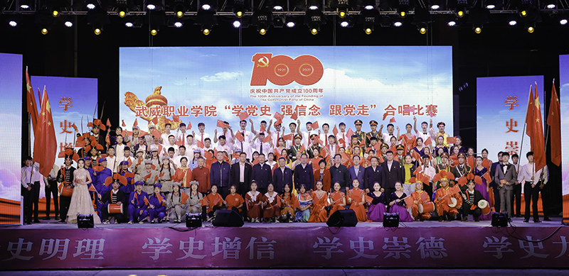 “沒有共產(chǎn)黨就沒有新中國,共產(chǎn)黨辛勞為民族,共產(chǎn)黨他一心救中國,他指給了人民解放的道路……”激昂的旋律,嘹亮的歌聲,揮舞的國旗,讓武威職業(yè)學(xué)院的校園在紅色經(jīng)典的渲染下,更顯蓬勃生機(jī)。