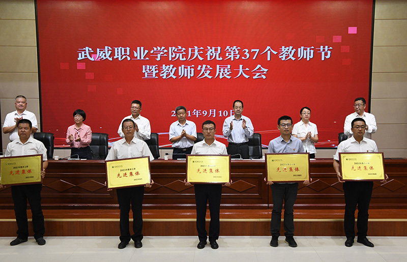 王永緒宣讀了省人社廳、省教育廳《關(guān)于表彰2021年甘肅省“園丁獎”先進集體和先進個人的決定》;田迎春宣讀了武威市委、市政府《關(guān)于表彰獎勵 2021 年全市教育工作先進集體和先進個人的決定》;何毅宣讀了《武威職業(yè)學院關(guān)于表揚2021年教育工作先進集體和先進個人的決定》;陳曉煜宣讀了《武威職業(yè)學院關(guān)于評定(聘任)教學名師、教學能手、教學新秀、專業(yè)(學科)帶頭人的決定》,并向先進集體和個人頒發(fā)了獎牌和證書。