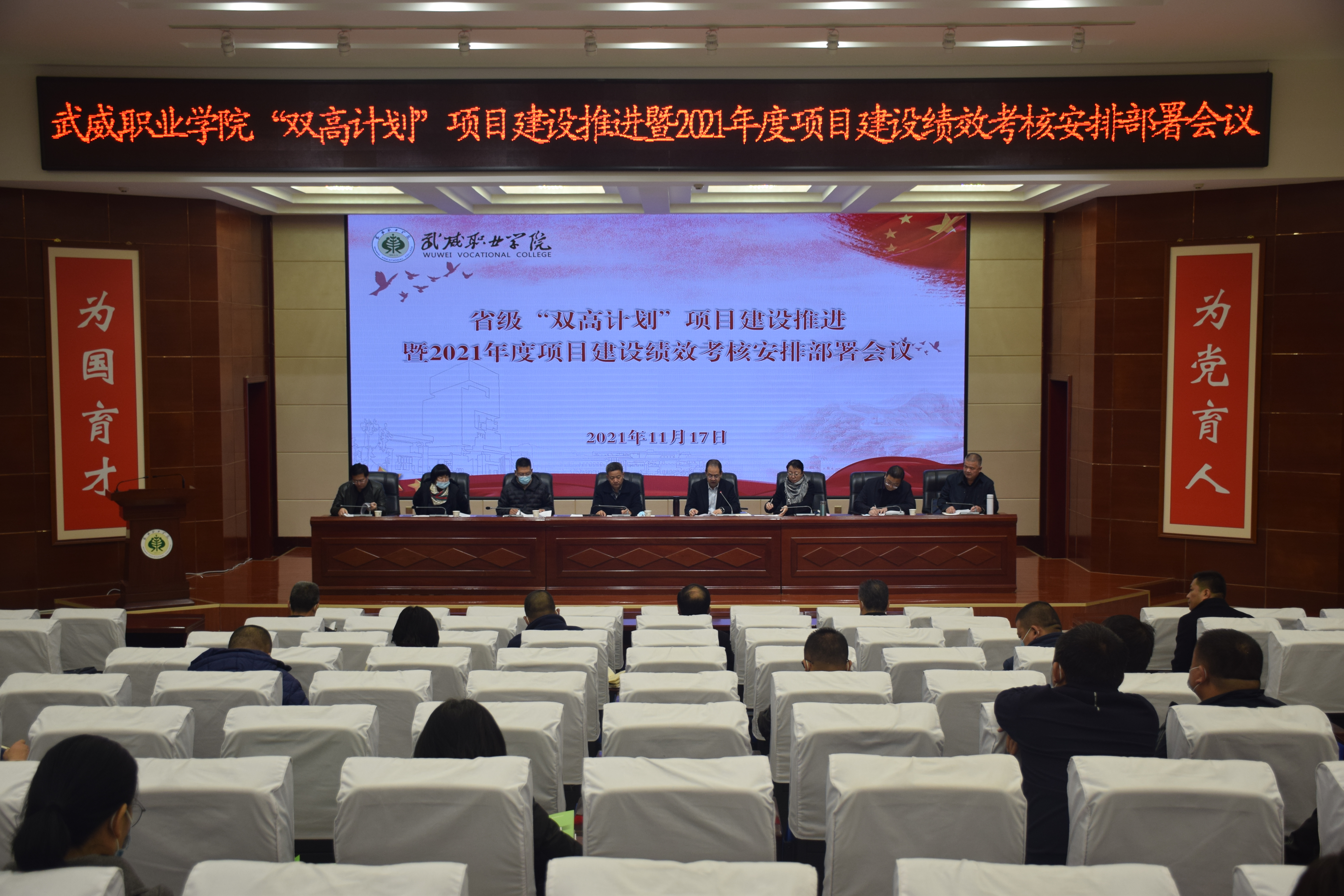 11月17日上午,“雙高計(jì)劃”項(xiàng)目建設(shè)暨2021年度項(xiàng)目建設(shè)績效考核安排部署會(huì)議在菁英廳召開。