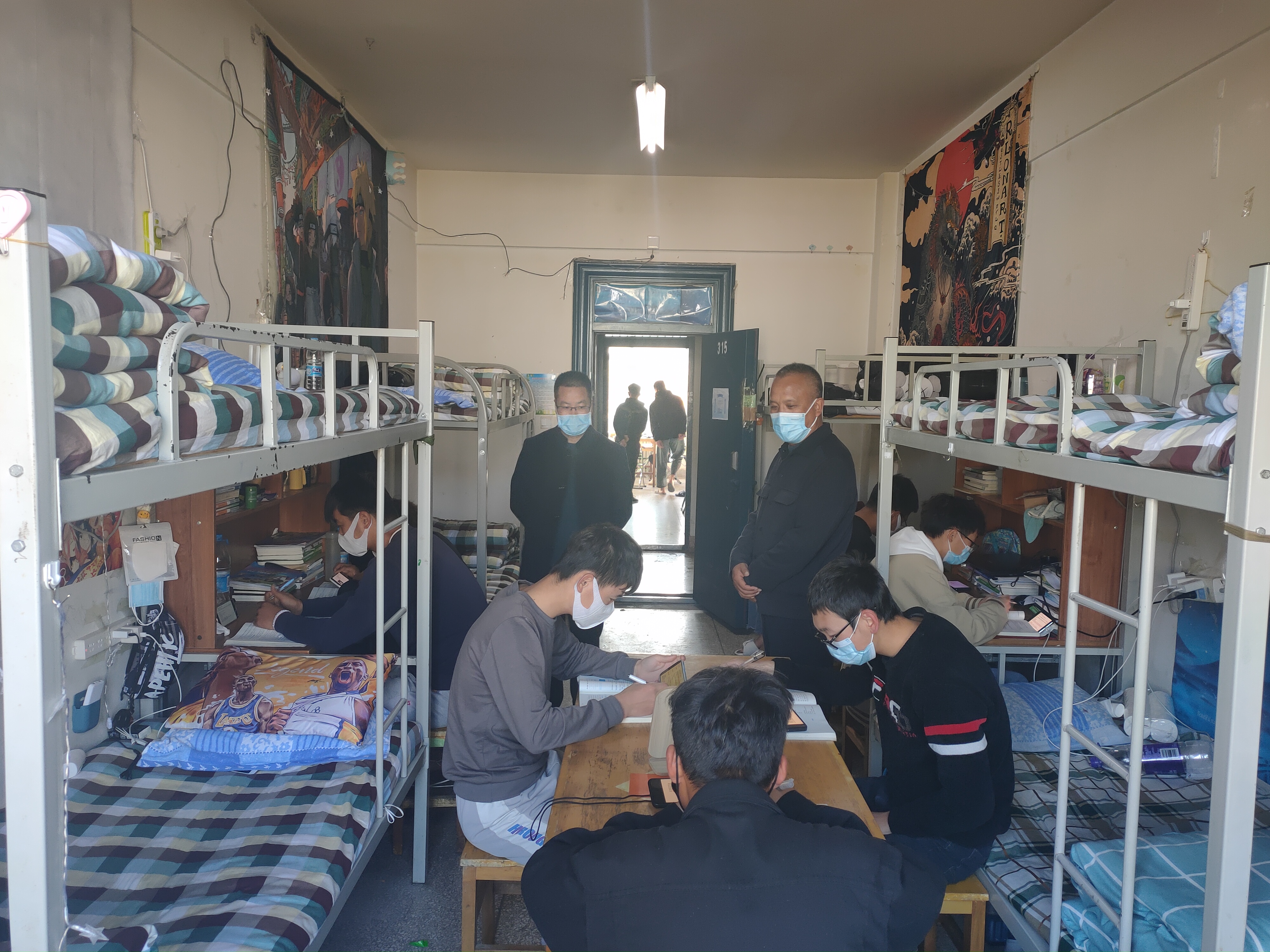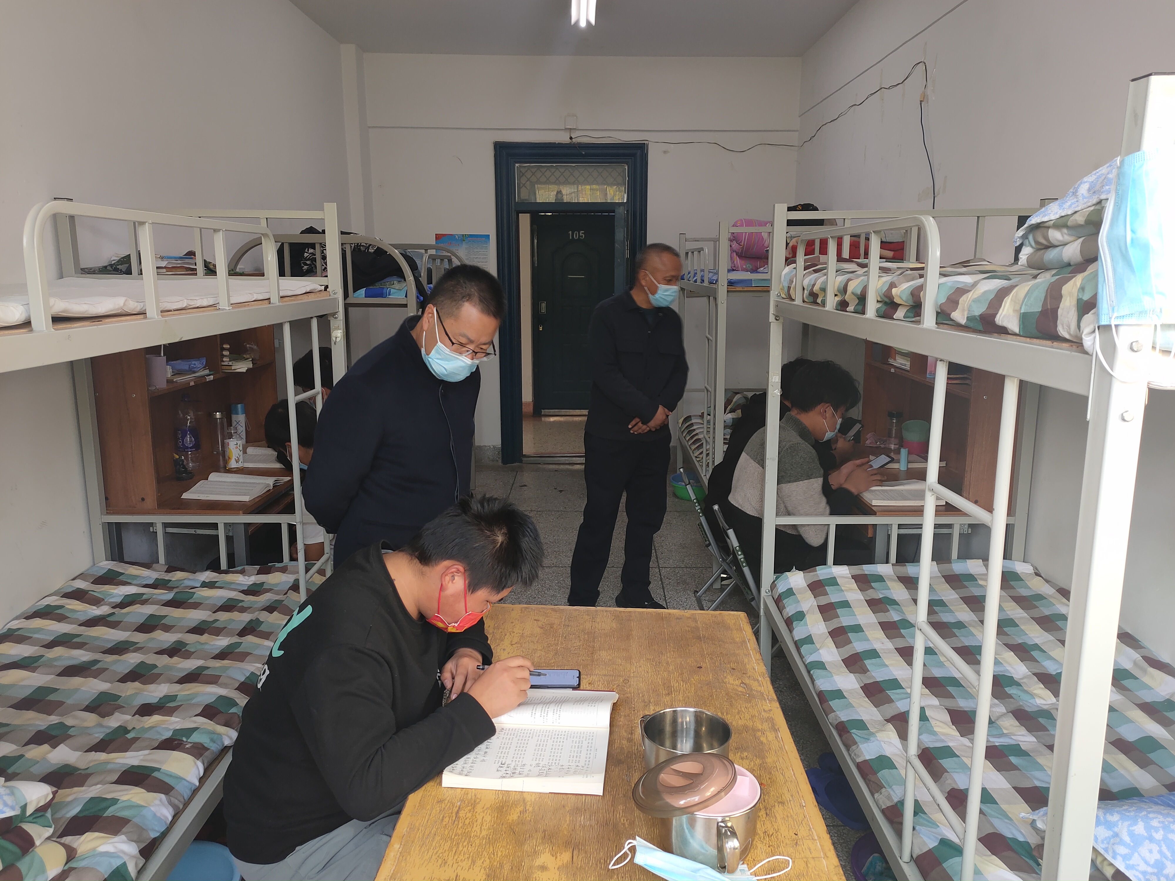 領導小組成員先后來到學生入住的三號公寓,每到一間宿舍,黨總支書記潘從民、主任張伯成貼心詢問同學們在校園封閉期間線上上課、網(wǎng)絡保障、生活物品、餐飲服務等方面的情況,叮囑同學們要認真上好每一節(jié)課,要打開窗戶多通風、勤洗手、出門戴口罩、不聚集、不扎堆、堅持2米線,健康適量開展戶外活動,保證良好的學習和生活狀態(tài),依照減少接觸的防疫原則,倡導同學們不網(wǎng)購、不點外賣,保持宿舍清潔衛(wèi)生,按時完成每天的個人信息填報工作,嚴格遵守疫情防控期間學院的各項管理規(guī)定,有困難、問題隨時向輔導員、班主任提出來,由系上及時協(xié)調(diào)處理。同時,也要及時向家長交流自己的學習、生活動態(tài),讓家長放心。