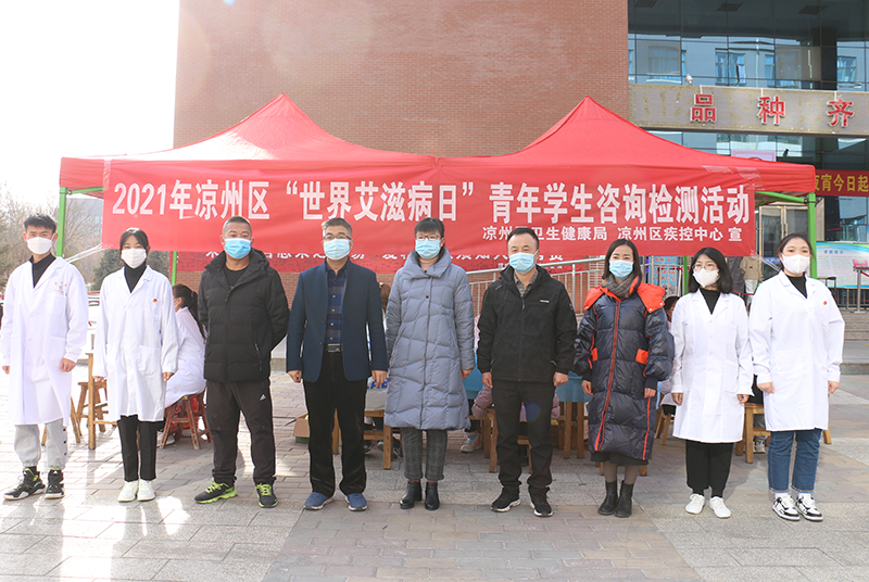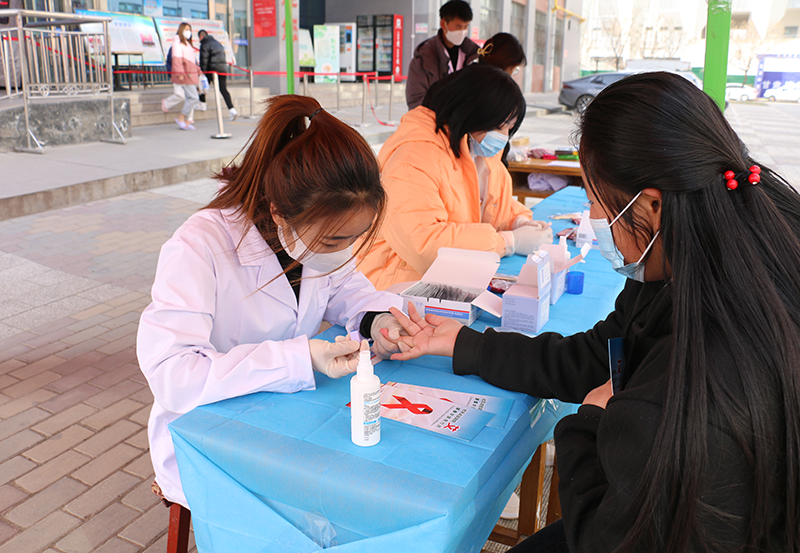 12月1日,學(xué)院護(hù)理系紅絲帶協(xié)會(huì)聯(lián)合涼州區(qū)衛(wèi)生健康局、涼州區(qū)疾控中心,在二號(hào)食堂門口及荷花池開展了“世界艾滋病日”青年學(xué)生咨詢檢測活動(dòng),活動(dòng)中對(duì)260余名學(xué)生進(jìn)行了免費(fèi)艾滋病檢測,并予以獎(jiǎng)品鼓勵(lì),組織了防艾知識(shí)宣傳志愿隊(duì)伍現(xiàn)場發(fā)放宣傳手冊,制作并贈(zèng)送紅絲帶標(biāo)志400余個(gè)。