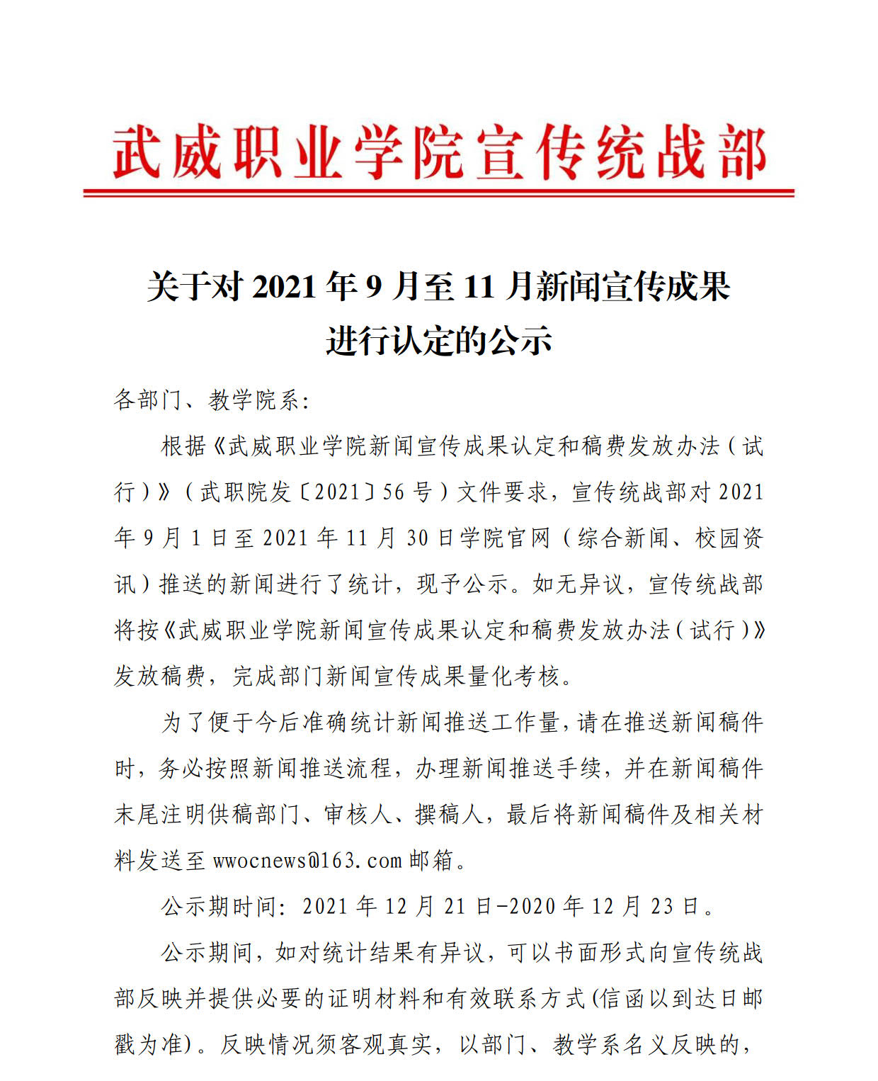 關(guān)于對2021年9月-11月新聞宣傳成果進(jìn)行認(rèn)定的公示