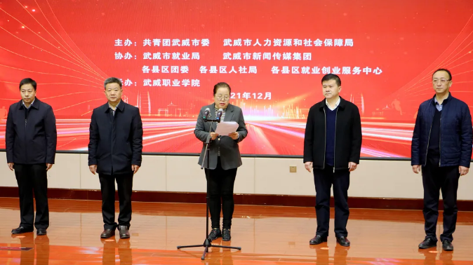 12月25日,由共青團(tuán)武威市委、武威市人社局共同主辦,武威市就業(yè)局、武威職業(yè)學(xué)院聯(lián)合承辦的甘肅省“百千萬”創(chuàng)業(yè)引領(lǐng)工程武威市青年創(chuàng)新創(chuàng)業(yè)大賽(決賽)在我院大學(xué)生活動(dòng)中心菁英廳圓滿舉行。出席大賽開幕式的有武威市人大常委會(huì)副主任劉光美,共青團(tuán)甘肅省委青年發(fā)展與權(quán)益維護(hù)部一級調(diào)研員范智勇,武威職業(yè)學(xué)院黨委書記、院長趙明,市就業(yè)局副局長夏湧濤。團(tuán)市委書記馬維斌主持開幕式。