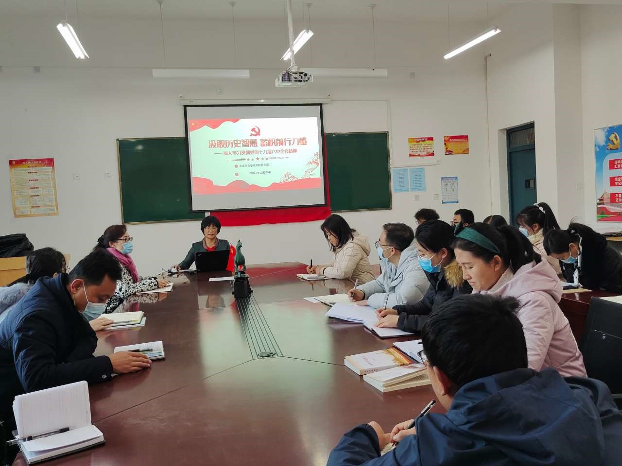 何毅同志將十九屆六中全會主要精神和核心要義形象直觀的展現(xiàn)給全體教師,言簡意賅,通俗易懂。晏素珍同志就十九屆六中全會精神的學習交流了自己的感悟和體會。