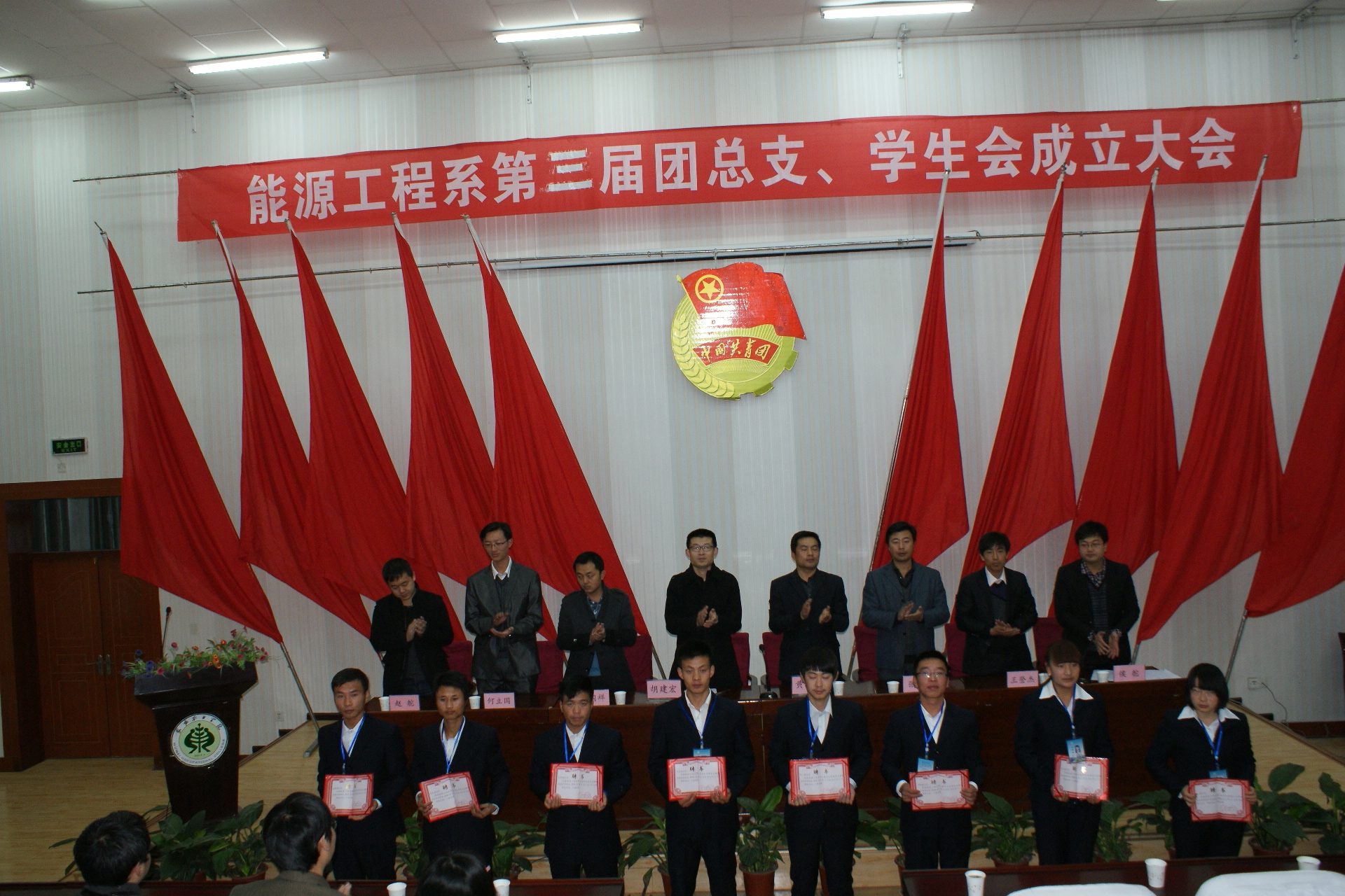 在政治輔導(dǎo)員侯舵宣布了能源工程系第二屆團(tuán)總支、學(xué)生會(huì)學(xué)生干部任命決定之后,參會(huì)領(lǐng)導(dǎo)與老師為新當(dāng)選的學(xué)生干部頒發(fā)了聘書和工作證,侯老師希望大家能夠認(rèn)識(shí)到手中聘書所承載的責(zé)任和意義,能夠努力工作,再創(chuàng)輝煌。新任學(xué)生會(huì)主席葉鵬程對(duì)第三屆團(tuán)總支、學(xué)生會(huì)的工作做出了展望。