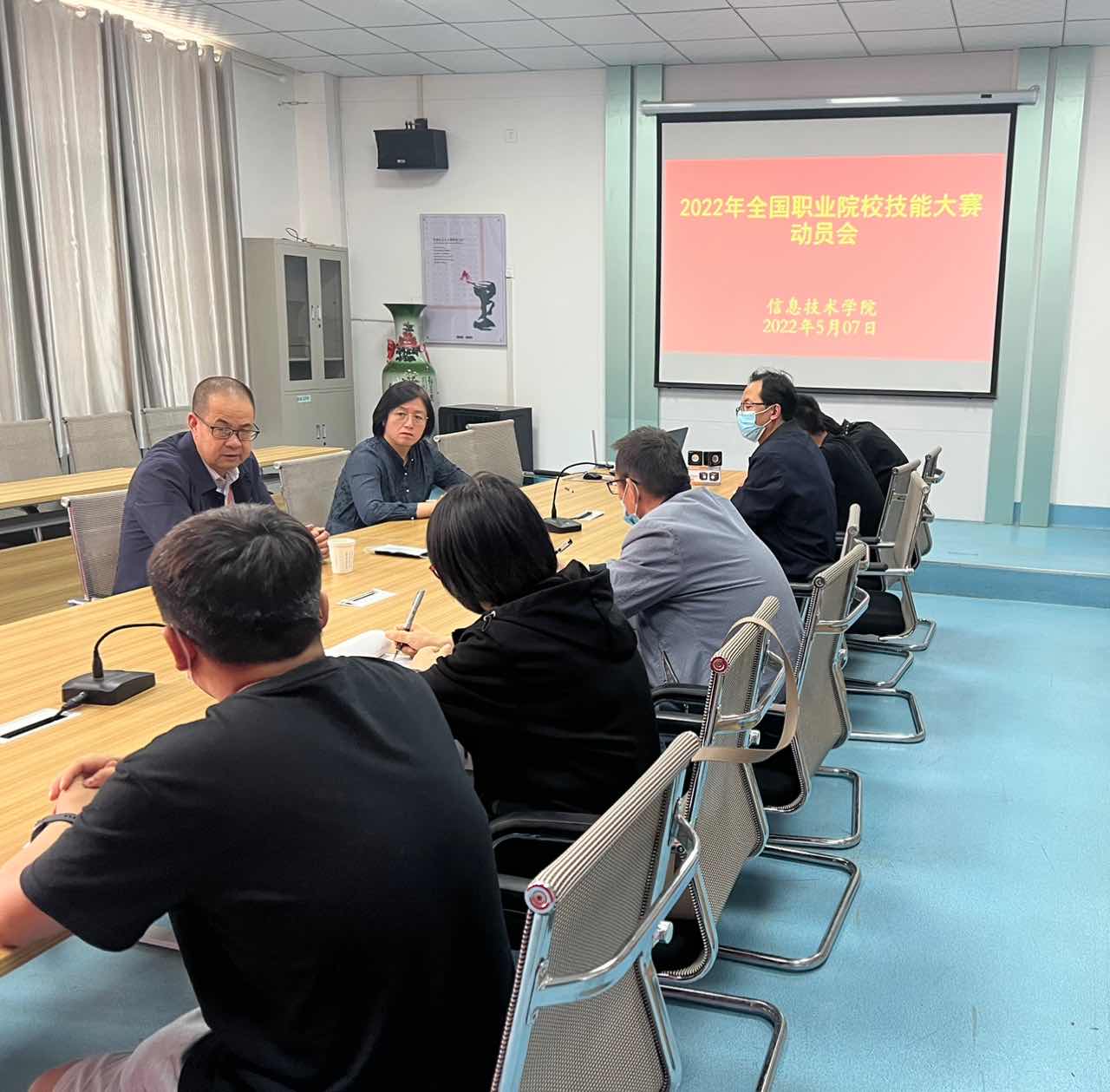 為貫徹落實(shí)“技能甘肅”“技能武威”工作任務(wù),全力以赴推進(jìn)學(xué)校高質(zhì)量發(fā)展,加強(qiáng)學(xué)生技能水平,全力做好2022年全國(guó)職業(yè)院校技能大賽備賽工作,5月7日,2022年全國(guó)職業(yè)院校技能大賽動(dòng)員會(huì)在信息技術(shù)學(xué)院明德樓409會(huì)議室召開(kāi)。學(xué)校黨委副書(shū)記翟存祥、信息技術(shù)學(xué)院院長(zhǎng)李亞梅、2個(gè)國(guó)賽參賽隊(duì)的全體指導(dǎo)老師和學(xué)生參加本次會(huì)議。