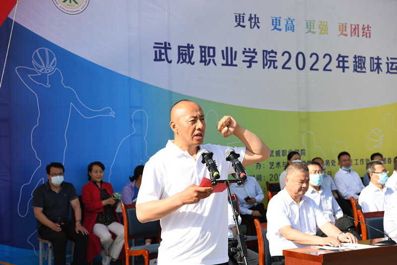 5月24日上午,武威職業(yè)學(xué)院2022年趣味運(yùn)動(dòng)會(huì)在運(yùn)動(dòng)場(chǎng)隆重開(kāi)幕。開(kāi)幕式由學(xué)校黨委委員、副校長(zhǎng)王守云主持。學(xué)校領(lǐng)導(dǎo)班子成員,各部門(mén)負(fù)責(zé)同志,二級(jí)學(xué)院黨總支書(shū)記、院長(zhǎng)參加開(kāi)幕式。學(xué)校黨委書(shū)記、校長(zhǎng)趙明出席并致開(kāi)幕詞。