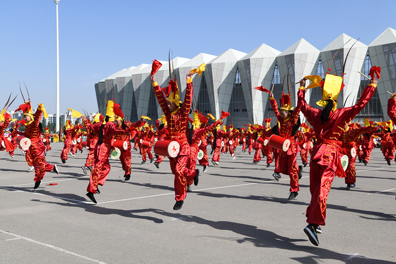 開(kāi)幕式的最后一個(gè)環(huán)節(jié)是團(tuán)體操表演。宏偉壯觀的國(guó)家級(jí)非物質(zhì)文化遺產(chǎn)項(xiàng)目攻鼓子表演,剛?cè)岵?jì)的武術(shù)表演,活力四射的健美操,使人精神振奮,熱情沸騰。一個(gè)個(gè)精彩的表演贏得了全場(chǎng)一陣陣的掌聲和歡呼聲,為開(kāi)幕式營(yíng)造了熱烈的氛圍,充分的展現(xiàn)了新時(shí)代大學(xué)生的青春風(fēng)采。
