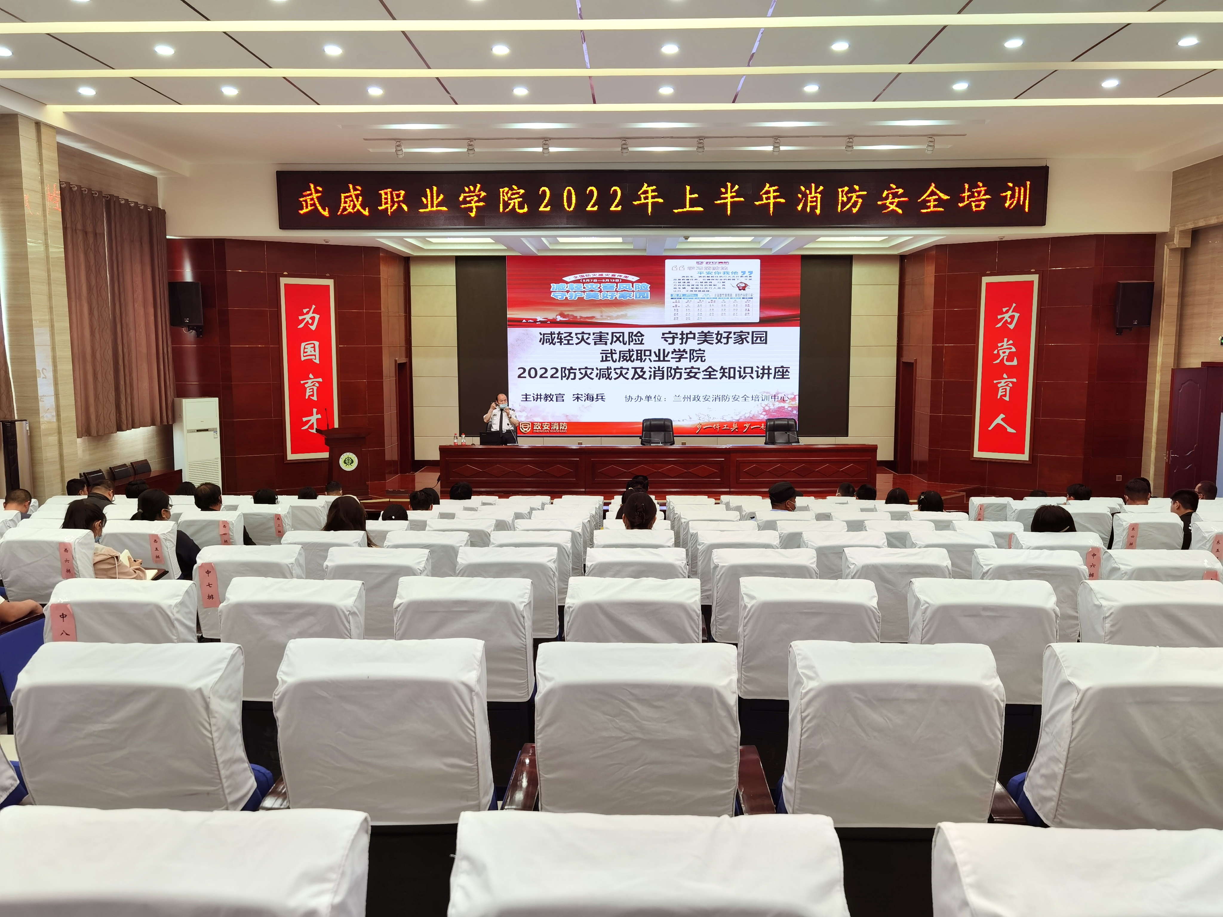 5月18日下午,學(xué)校在大學(xué)生發(fā)展中心菁英廳舉辦了2022年上半年消防安全知識培訓(xùn)。蘭州政安消防教官宋海斌應(yīng)邀作了“減輕災(zāi)害風(fēng)險,守護(hù)美好家園”專題講座。各部門、二級學(xué)院安全信息員、實驗實訓(xùn)室管理員、新進(jìn)教師和消控室、學(xué)生食堂等重點管理崗位人員參加了培訓(xùn)。