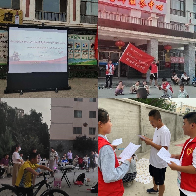 為深入學(xué)習(xí)習(xí)近平總書記在慶祝中國共產(chǎn)主義青年團(tuán)成立100周年大會上的重要講話精神,貫徹落實(shí)黨的十九屆六中全會精神和省第十四次黨代會精神,引導(dǎo)和幫助廣大青年學(xué)生上好與現(xiàn)實(shí)相結(jié)合的“大思政課”,在社會課堂中“受教育、長才干、作貢獻(xiàn)”,堅定信念聽黨話、跟黨走,迎接黨的二十大勝利召開,由翟存祥名師工作室指導(dǎo)的“習(xí)近平新時代中國特色社會主義思想學(xué)習(xí)社”的大學(xué)生積極組建理論普及宣講團(tuán),開展理論普及宣講活動。