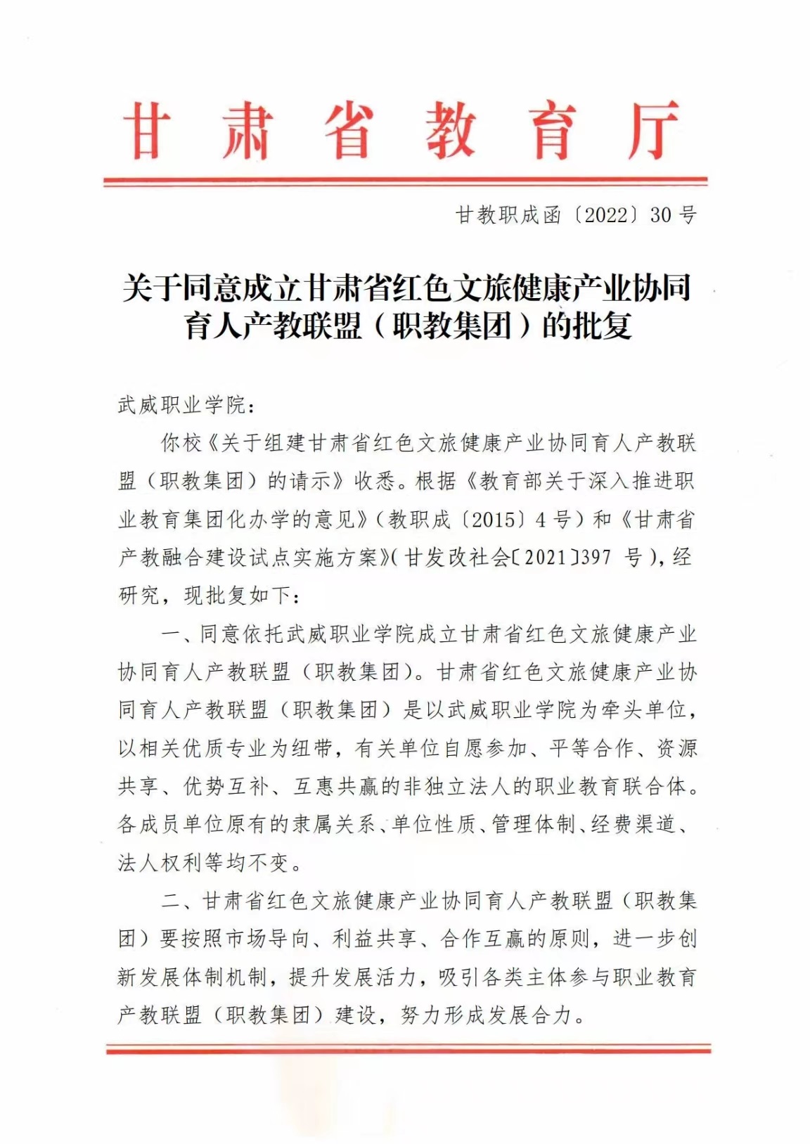 日前,甘肅省教育廳批復(fù)我校成立“甘肅省紅色文旅健康產(chǎn)業(yè)協(xié)同育人產(chǎn)教聯(lián)盟(職教集團(tuán))”。