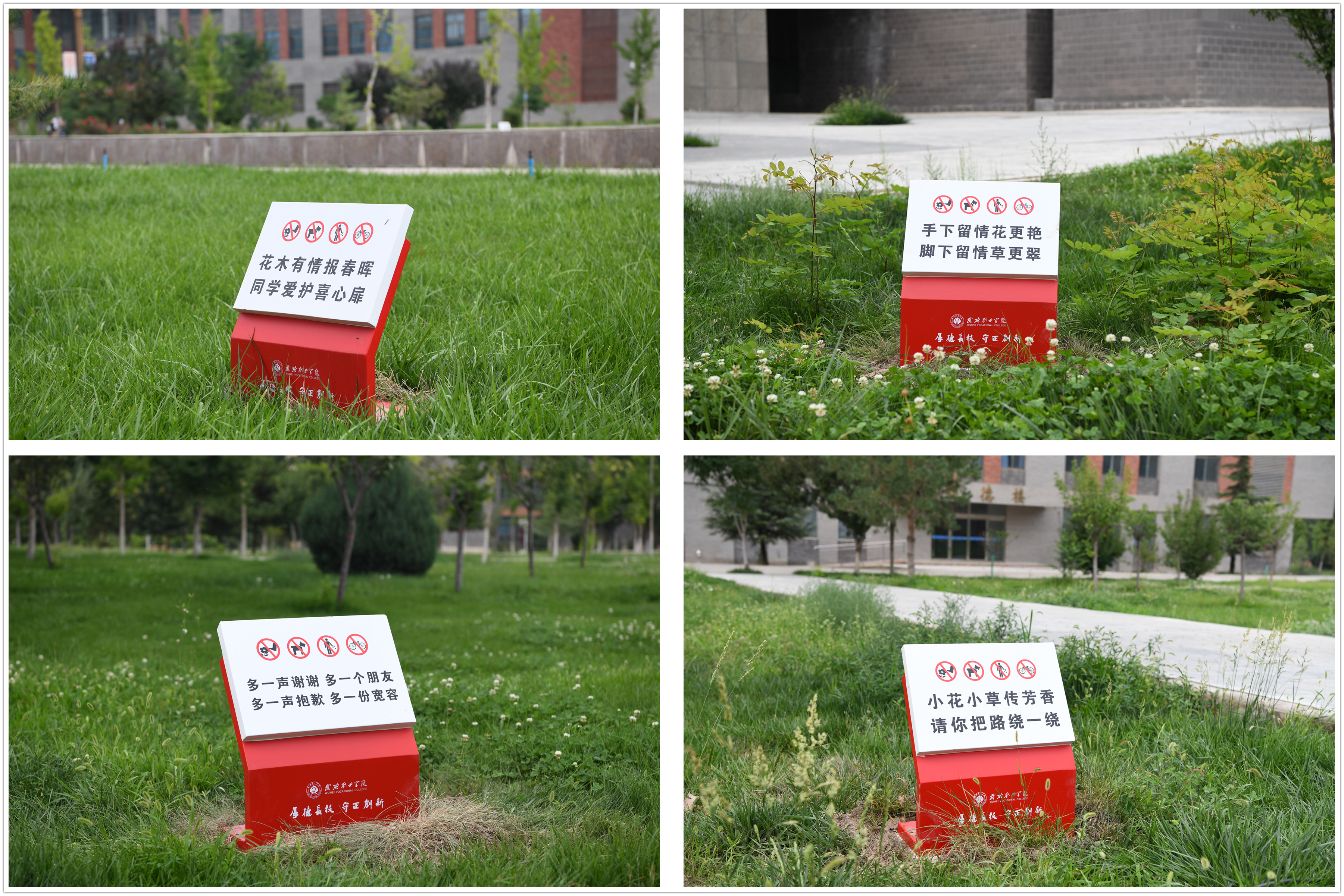 “繞行三五步,留得芳草綠”“要想校園凈又美,健康文明記心里”“手上留情花自香,腳下留情草如茵”。近日,在校園主干道周邊、草坪附近,這樣的文明言行提示語(yǔ)隨處可見。這是學(xué)校為不斷優(yōu)化校園環(huán)境,提升師生日常文明素養(yǎng),推動(dòng)文明校園建設(shè)的重要舉措,安裝完成后得到了廣大師生的高度贊賞。