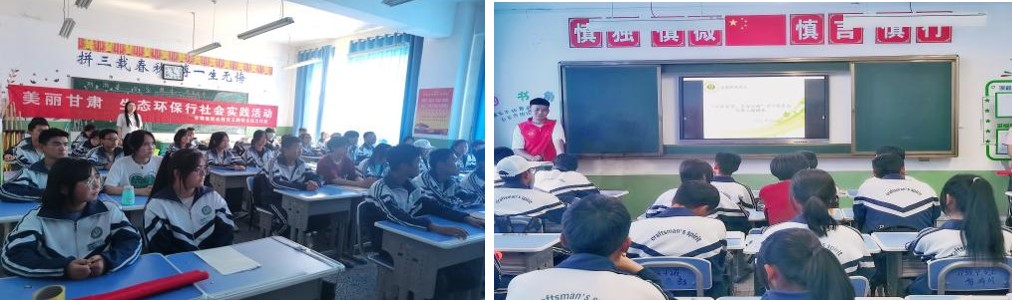 團隊成員在天祝職業(yè)中專教務(wù)處主任張健瑞教師的指引來到21級3班,志愿者通過播放PPT向同學們宣講了生態(tài)環(huán)保的重要性以及國家對于生態(tài)環(huán)保的做出工作部署及法律法規(guī),并且向同學們進行提問了生態(tài)環(huán)保知識、發(fā)放了調(diào)查問卷。