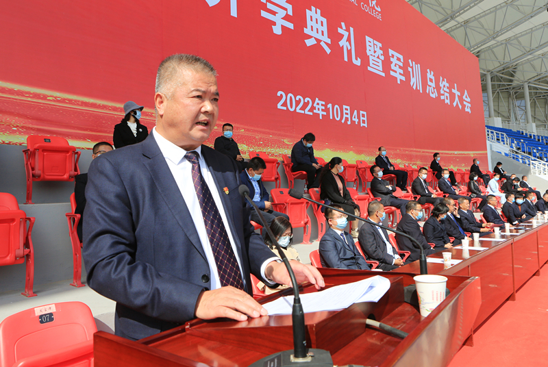金秋的校園陽(yáng)光明媚,嘹亮的歌聲唱響青春。10月4日上午9時(shí),在莊嚴(yán)隆重的升國(guó)旗儀式結(jié)束后,2022級(jí)新生開(kāi)學(xué)典禮暨軍訓(xùn)總結(jié)大會(huì)在體育場(chǎng)拉開(kāi)了帷幕。學(xué)校黨委書(shū)記、校長(zhǎng)趙明出席大會(huì)并講話,涼州區(qū)人武部上校政委丁俊強(qiáng)受邀出席。校領(lǐng)導(dǎo)翟存祥、王永緒、田迎春、何毅、陳曉煜、張開(kāi)禮出席大會(huì)。大會(huì)由學(xué)校黨委委員、副校長(zhǎng)王守云主持。