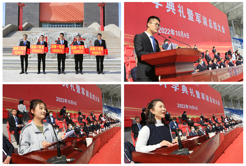 開(kāi)學(xué)典禮前,舉行了新生軍訓(xùn)總結(jié)大會(huì)。各方陣隊(duì)列整齊劃一,步伐堅(jiān)定有力,口號(hào)氣勢(shì)磅礴,歌聲嘹亮高亢,充分彰顯了廣大同學(xué)聽(tīng)從命令、服從指揮、朝氣蓬勃、團(tuán)結(jié)向上的良好精神風(fēng)貌。學(xué)生工作處負(fù)責(zé)人宣讀了2022年軍訓(xùn)先進(jìn)集體和軍訓(xùn)標(biāo)兵名單,出席大會(huì)的領(lǐng)導(dǎo)為先進(jìn)集體、個(gè)人頒發(fā)了獎(jiǎng)牌和榮譽(yù)證書(shū)。