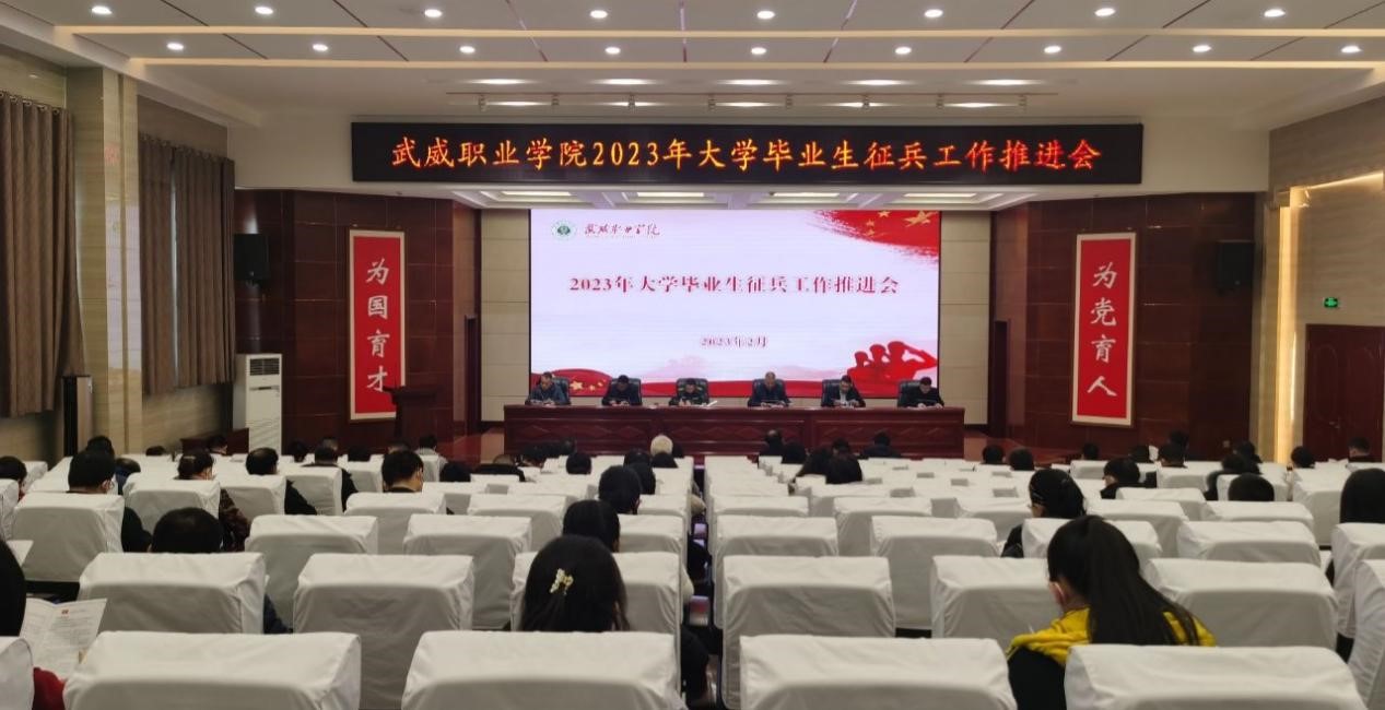 2月10日下午,學(xué)校2023年大學(xué)畢業(yè)生征兵工作推進會在菁英廳召開,學(xué)校黨委委員、副校長王守云,涼州區(qū)人武部中校副部長楊海生出席會議。