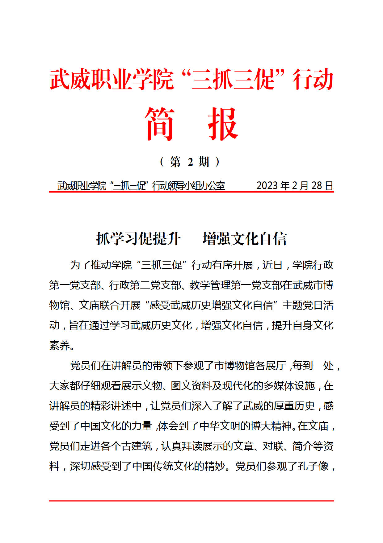 簡報第2期:抓學(xué)習(xí)促提升 增強(qiáng)文化自信