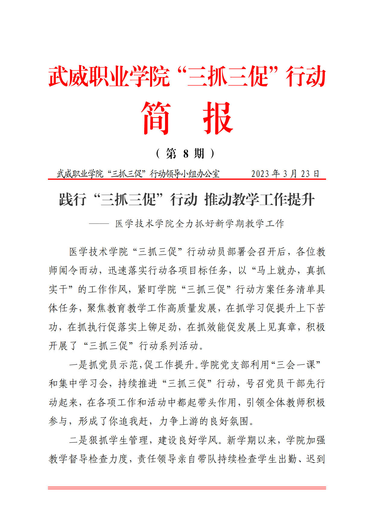 簡報第8期:踐行“三抓三促”行動 推動教學(xué)工作提升