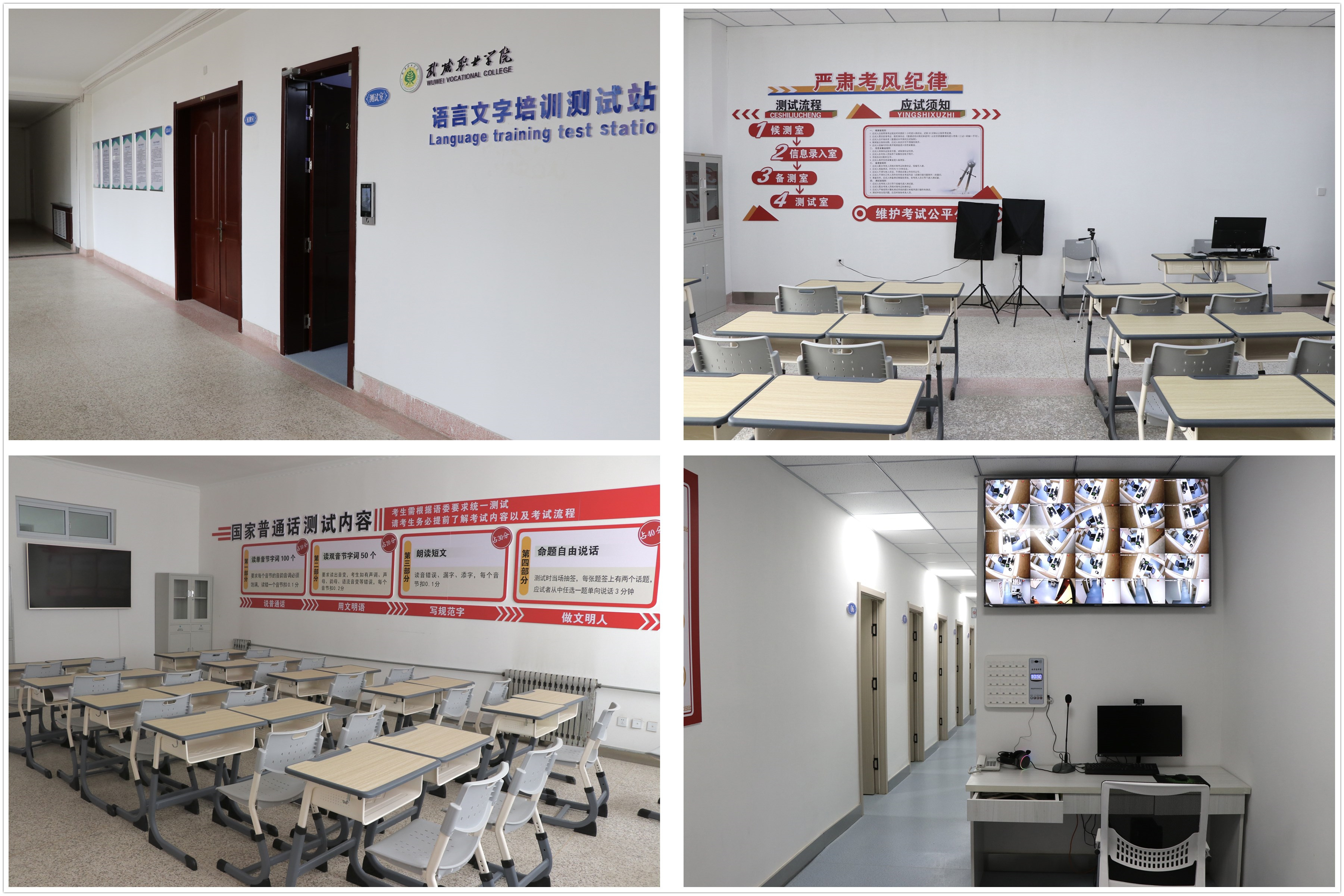 2003年建校起,學(xué)校承接武威市普通話培訓(xùn)測(cè)試任務(wù),2008年,我校語(yǔ)言文字培訓(xùn)測(cè)試站獲批建設(shè)。學(xué)校對(duì)普通話培訓(xùn)測(cè)試工作高度重視,努力為廣大師生搭建普通話水平培訓(xùn)測(cè)試優(yōu)質(zhì)服務(wù)平臺(tái),2019年將“普通話標(biāo)準(zhǔn)化測(cè)試機(jī)房建設(shè)項(xiàng)目”列入學(xué)?!半p高”計(jì)劃建設(shè)項(xiàng)目,投入61萬(wàn)余元,于2022年10月建成。