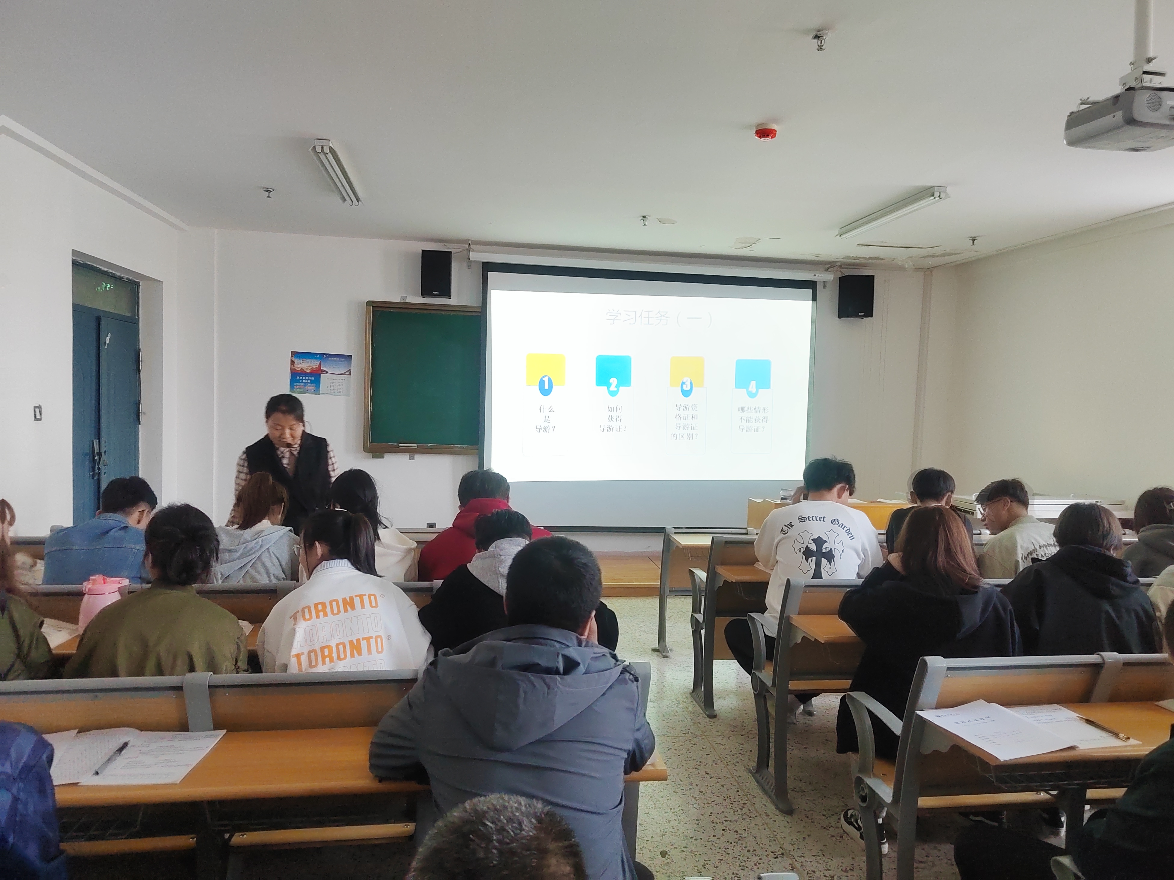 旅游教研室教師孔玉玲以《導(dǎo)游管理法律制度》為主題,帶領(lǐng)2022級(jí)旅游管理大專班學(xué)生為大家奉上了一堂精彩的研討課。整個(gè)過程在課程思政理念的指導(dǎo)下,以“某旅行社委派無(wú)證導(dǎo)游帶團(tuán)造成嚴(yán)重后果”引入課題,激發(fā)學(xué)生興趣,緊接著圍繞課程導(dǎo)入案例,采用講授法、討論法、任務(wù)驅(qū)動(dòng)法等多元化的教學(xué)方式,將課程教學(xué)內(nèi)容與思政元素?zé)o縫銜接,實(shí)現(xiàn)了顯性培育與隱性熏陶的完美融合,取得了良好的教學(xué)效果。
