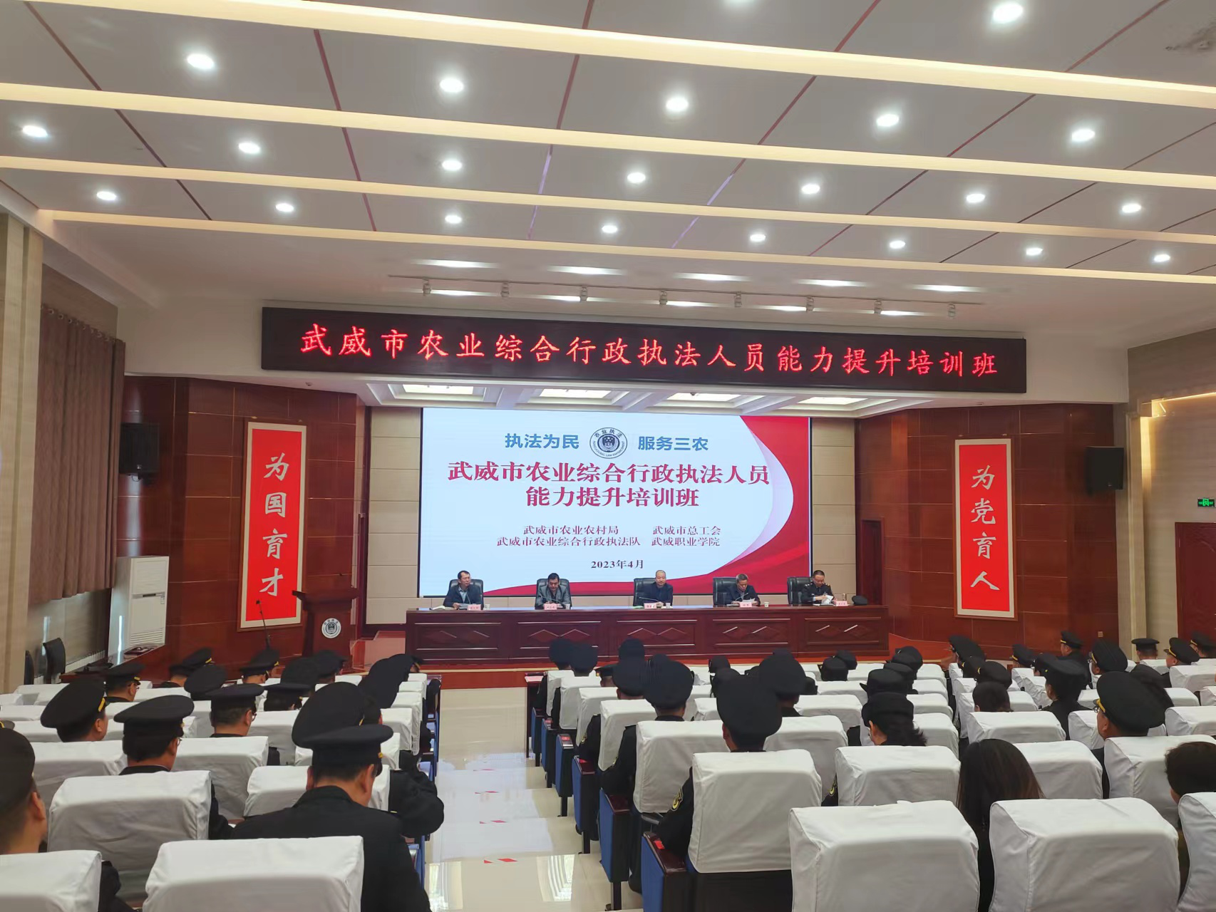 4月20日,由武威市農(nóng)業(yè)農(nóng)村局、武威市總工會、武威市農(nóng)業(yè)綜合行政執(zhí)法隊共同舉辦,學(xué)校承辦的“武威市農(nóng)業(yè)綜合行政執(zhí)法人員能力提升培訓(xùn)班”圓滿落幕。市、縣農(nóng)業(yè)綜合行政執(zhí)法隊共120人參加此次培訓(xùn)。