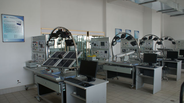 光伏光熱實訓(xùn)室建立于2013年4月初,主要面向光伏發(fā)電及應(yīng)用技術(shù)、太陽能光熱技術(shù)專業(yè),是能源工程系的專業(yè)實訓(xùn)室之一。室內(nèi)配有光伏產(chǎn)業(yè)鏈陳列柜、太陽能輻射觀測系統(tǒng)、太陽能氣象觀測系統(tǒng)各1套,太陽能熱水器實訓(xùn)裝置2套,太陽能光伏發(fā)電系統(tǒng)應(yīng)用平臺4套,太陽能光伏發(fā)電系統(tǒng)實訓(xùn)裝置8套。該實訓(xùn)室主要服務(wù)于我系《光伏發(fā)電技術(shù)分析與應(yīng)用》、《太陽能資源利用與開發(fā)》、《光伏發(fā)電系統(tǒng)集成與施工》等專業(yè)核心課程。