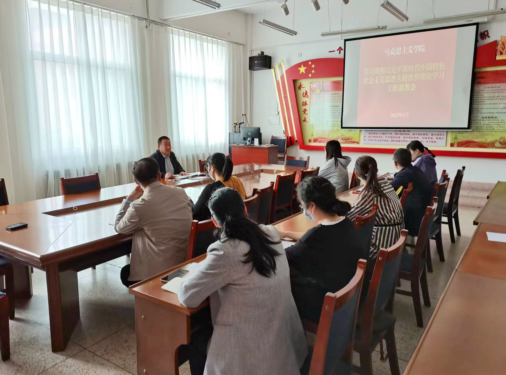 馬克思主義學(xué)院積極響應(yīng),迅速啟動(dòng),第一時(shí)間召開(kāi)了主題教育動(dòng)員部署會(huì),對(duì)學(xué)院開(kāi)展學(xué)習(xí)貫徹習(xí)近平新時(shí)代中國(guó)特色社會(huì)主義思想主題教育進(jìn)行安排部署,始終堅(jiān)持高標(biāo)準(zhǔn)、嚴(yán)要求,扎實(shí)開(kāi)展學(xué)習(xí),制定集體學(xué)習(xí)計(jì)劃表和個(gè)人自學(xué)表,明確學(xué)習(xí)內(nèi)容、時(shí)間安排、學(xué)習(xí)方式,組織領(lǐng)導(dǎo)等。以深入學(xué)習(xí)習(xí)近平新時(shí)代中國(guó)特色社會(huì)主義思想為主要內(nèi)容,以提升思政課教師政治能力為重點(diǎn),以深化黨員理論武裝為抓手,以全面提高教學(xué)能力為著力點(diǎn),引導(dǎo)黨員讀原著學(xué)原文悟原理,認(rèn)真研讀黨的二十大報(bào)告和黨章,學(xué)習(xí)《習(xí)近平著作選讀》《習(xí)近平新時(shí)代中國(guó)特色社會(huì)主義思想專(zhuān)題摘編》等指定學(xué)習(xí)材料,全面、系統(tǒng)、準(zhǔn)確領(lǐng)會(huì)和把握習(xí)近平新時(shí)代中國(guó)特色社會(huì)主義思想的科學(xué)體系、核心要義、實(shí)踐要求。