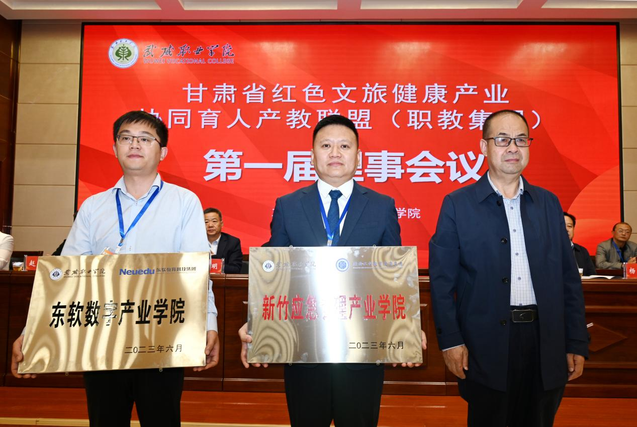 學(xué)校黨委副書(shū)記翟存祥為東軟教育科技集團(tuán)、陜西工科教育集團(tuán)授“東軟數(shù)字產(chǎn)業(yè)學(xué)院”“新竹應(yīng)急管理產(chǎn)業(yè)學(xué)院”牌匾。