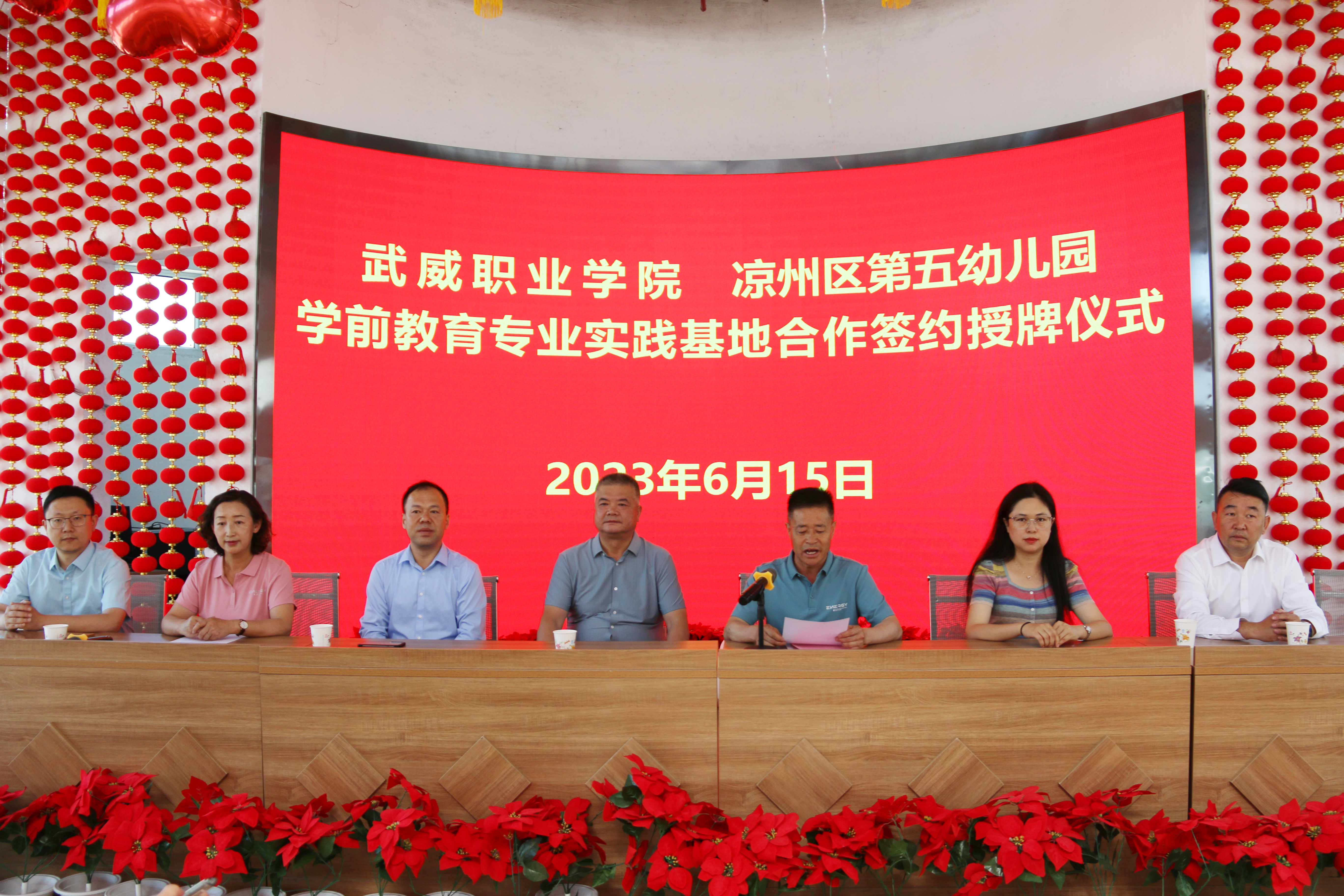 6月15日,武威職業(yè)學(xué)院學(xué)前教育專業(yè)實(shí)踐基地授牌儀式分別在武威市第二實(shí)驗(yàn)幼兒園、涼州區(qū)第五幼兒園舉行。學(xué)校黨委委員、副校長(zhǎng)王守云,武威市第二實(shí)驗(yàn)幼兒園園長(zhǎng)羅亞莉,涼州區(qū)第五幼兒園園長(zhǎng)張俊山出席授牌儀式。藝術(shù)與教育學(xué)院教師代表,市區(qū)幼兒園領(lǐng)導(dǎo)班子成員及部分教師參加授牌儀式。