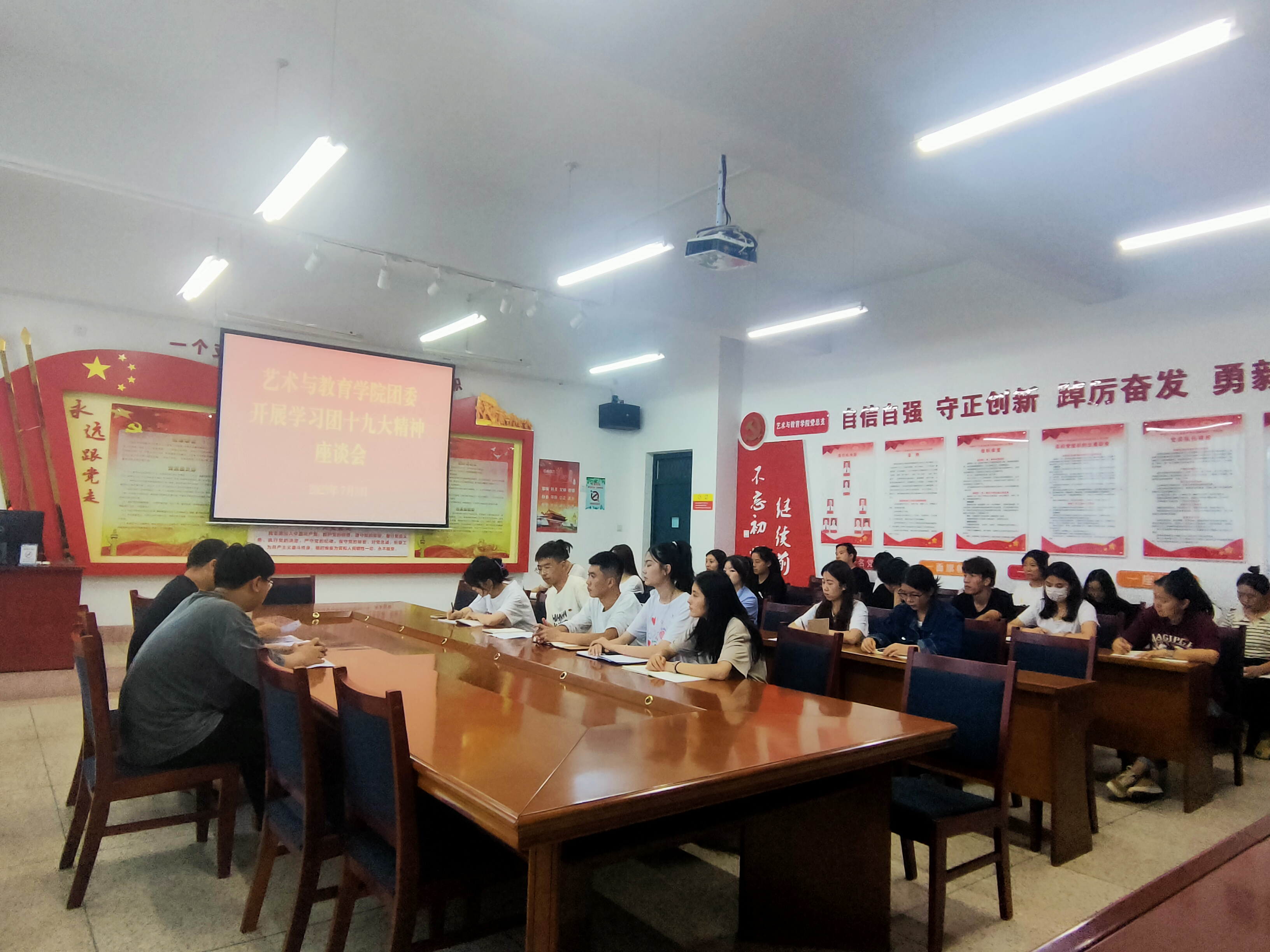 2023年7月3日晚,院團(tuán)委在勵(lì)勤樓209召開(kāi)了學(xué)習(xí)團(tuán)十九大精神座談會(huì)。會(huì)議由團(tuán)委書記唐鑫基主持,全體團(tuán)支部書記參加了會(huì)議。