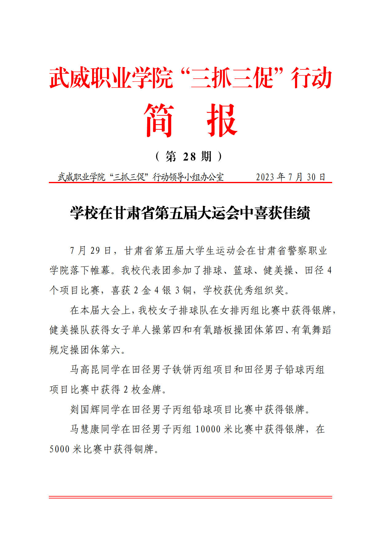 簡報第28期:學(xué)校在甘肅省第五屆大運會中喜獲佳績