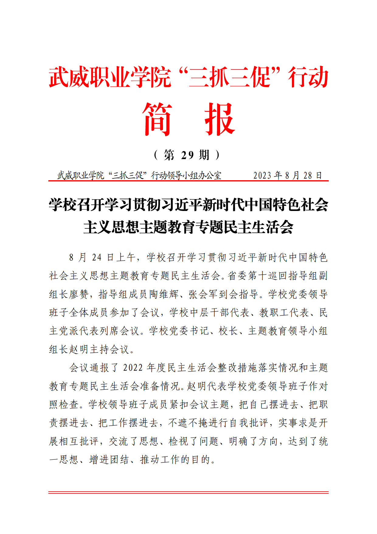 簡(jiǎn)報(bào)第29期:學(xué)校召開學(xué)習(xí)貫徹習(xí)近平新時(shí)代中國(guó)特色社會(huì)主義思想主題教育專題民主生活會(huì)