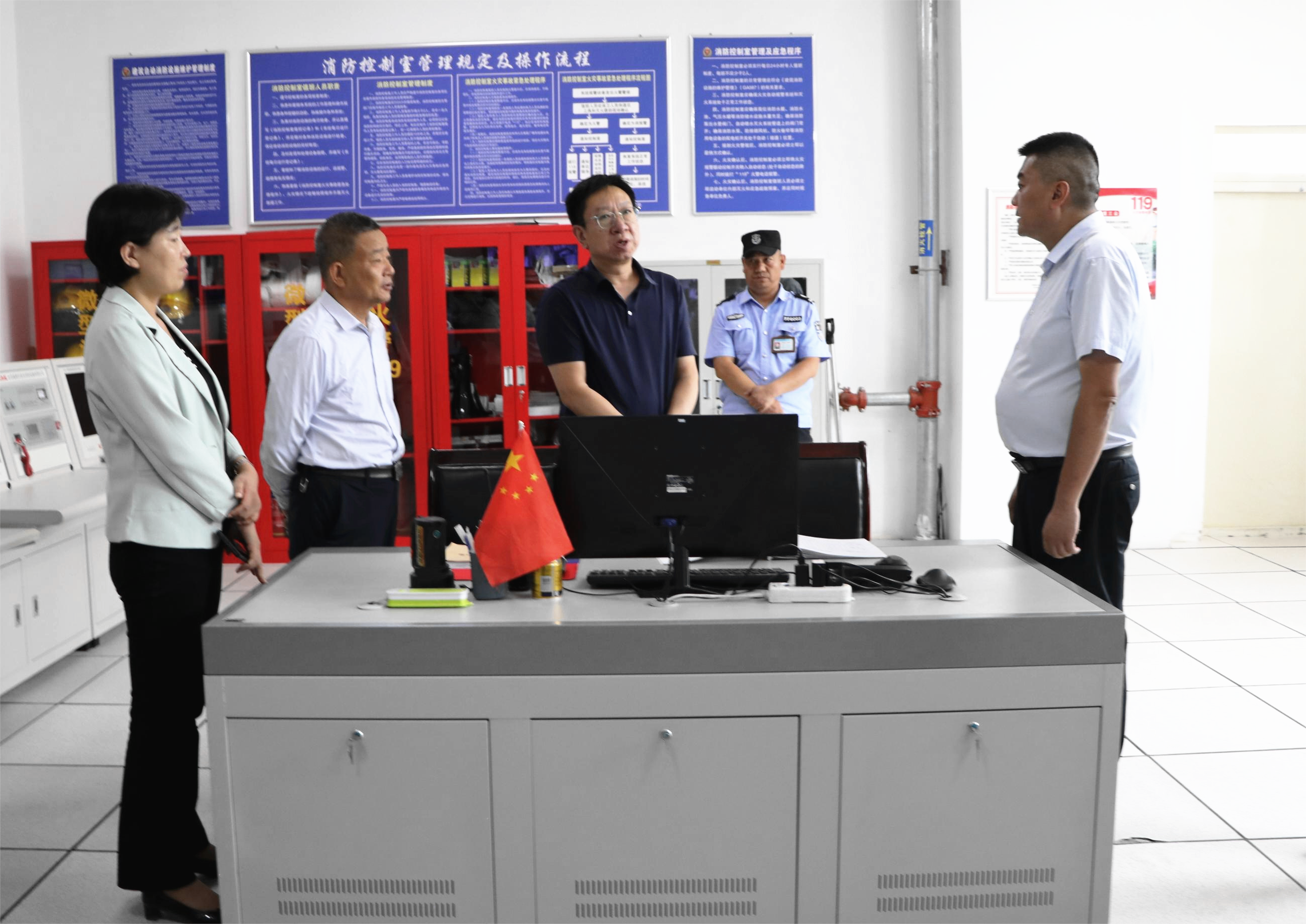 檢查過程中,雷江紅一行實地查看了學校消防控制中心、思政課實踐基地、新能源專業(yè)實訓室、迎新工作現(xiàn)場、體育場、學生食堂等地并查閱了相關工作資料。趙明詳細介紹了學校秋季開學、新生報到、安全保障、實驗實訓和學校建設發(fā)展等情況。