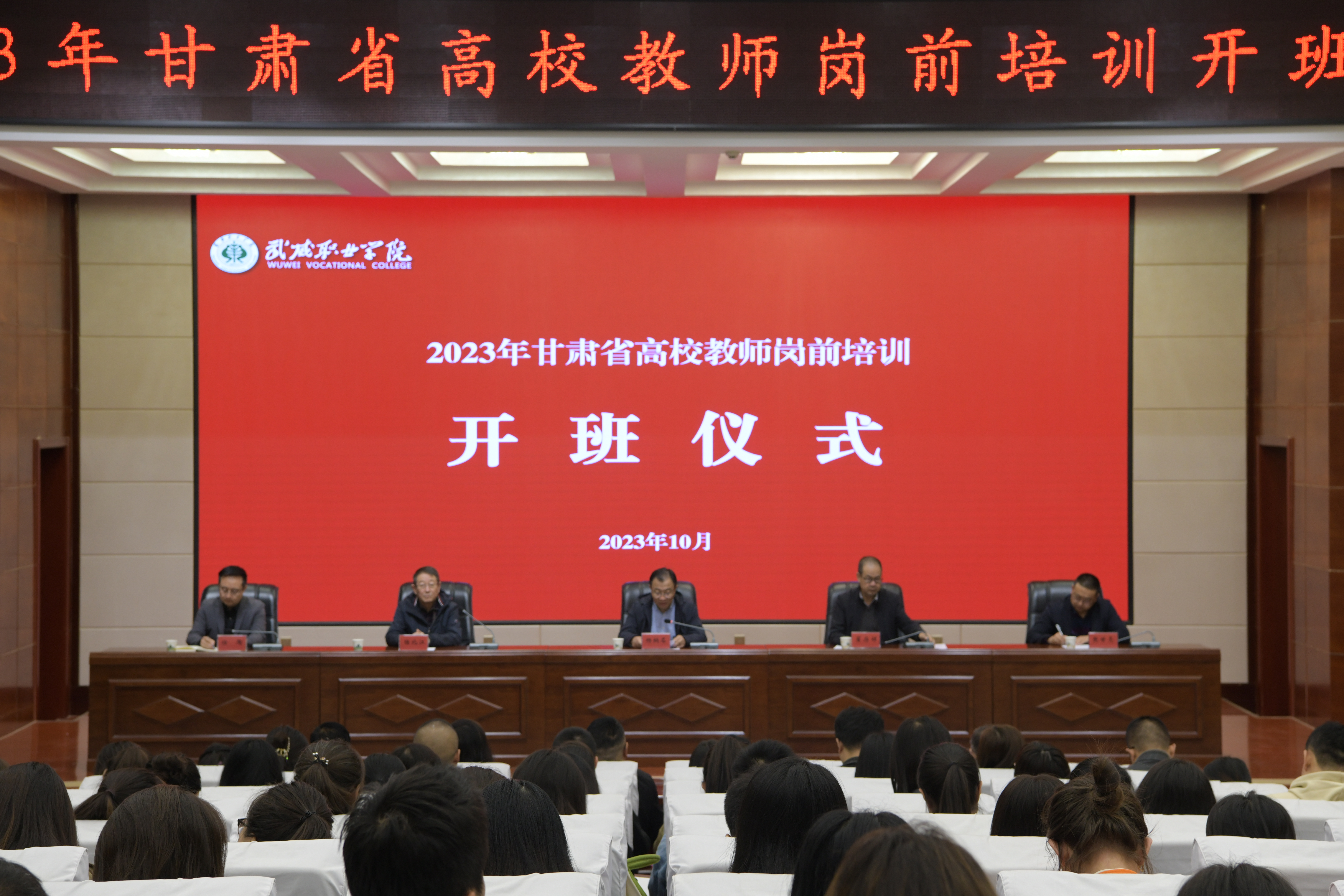 為深入學(xué)習(xí)貫徹習(xí)近平總書(shū)記教師節(jié)重要指示精神,引導(dǎo)廣大教師深刻領(lǐng)會(huì)教育家精神,牢記“為黨育人、為國(guó)育才”初心使命,樹(shù)立躬耕教壇信念,培養(yǎng)高素質(zhì)教師隊(duì)伍,10月14日上午,我校2023年新教師崗前培訓(xùn)教學(xué)班開(kāi)班儀式暨第一階段集中培訓(xùn)在學(xué)生發(fā)展中心菁英廳舉行。西北師范大學(xué)繼續(xù)教育學(xué)院院長(zhǎng)、甘肅省高等學(xué)校師資培訓(xùn)中心辦公室主任楊納名,武威職業(yè)學(xué)院黨委副書(shū)記翟存祥出席會(huì)議并講話,組織人事處、教務(wù)處負(fù)責(zé)人和180位新教師參加開(kāi)班儀式。儀式由甘肅省高等學(xué)校師資培訓(xùn)中心副主任陸北江主持。