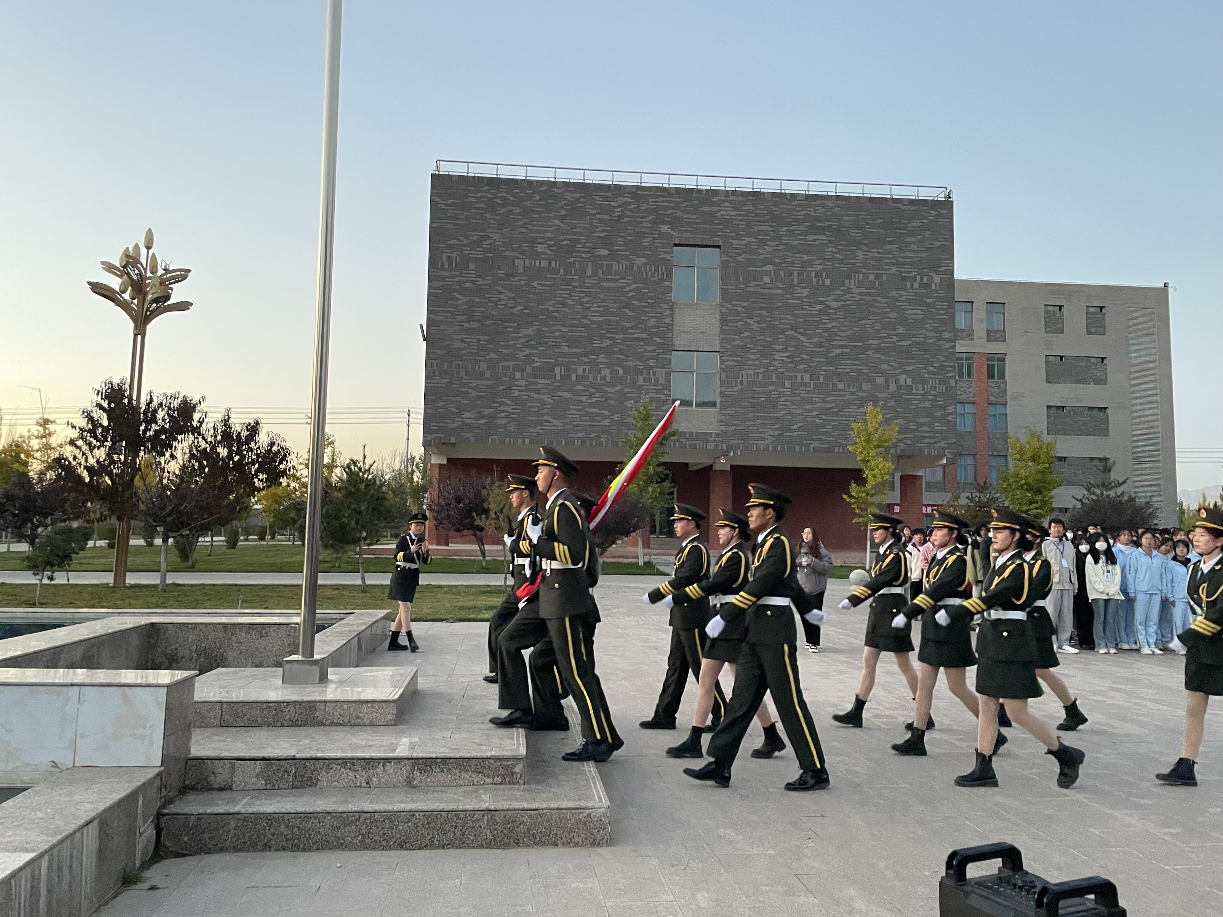 2023年10月23日清晨,醫(yī)學技術學院在圖書館前舉行升旗儀式。全體輔導員、班主任以及全體在校學生參加了此次升旗儀式。