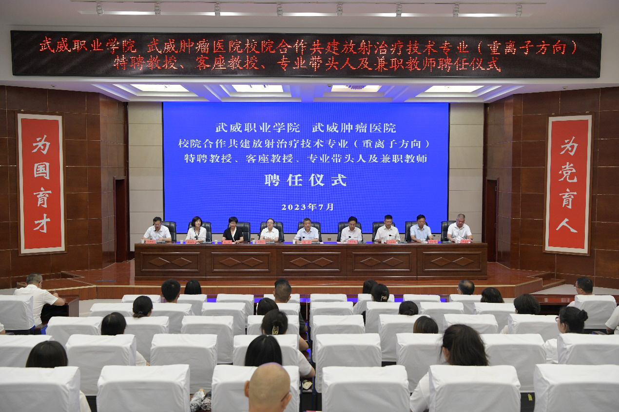 學校與武威腫瘤醫(yī)院舉行校院合作共建放射治療技術專業(yè)(重離子方向)特聘教授、客座教授、專業(yè)帶頭人和兼職教師聘任儀式