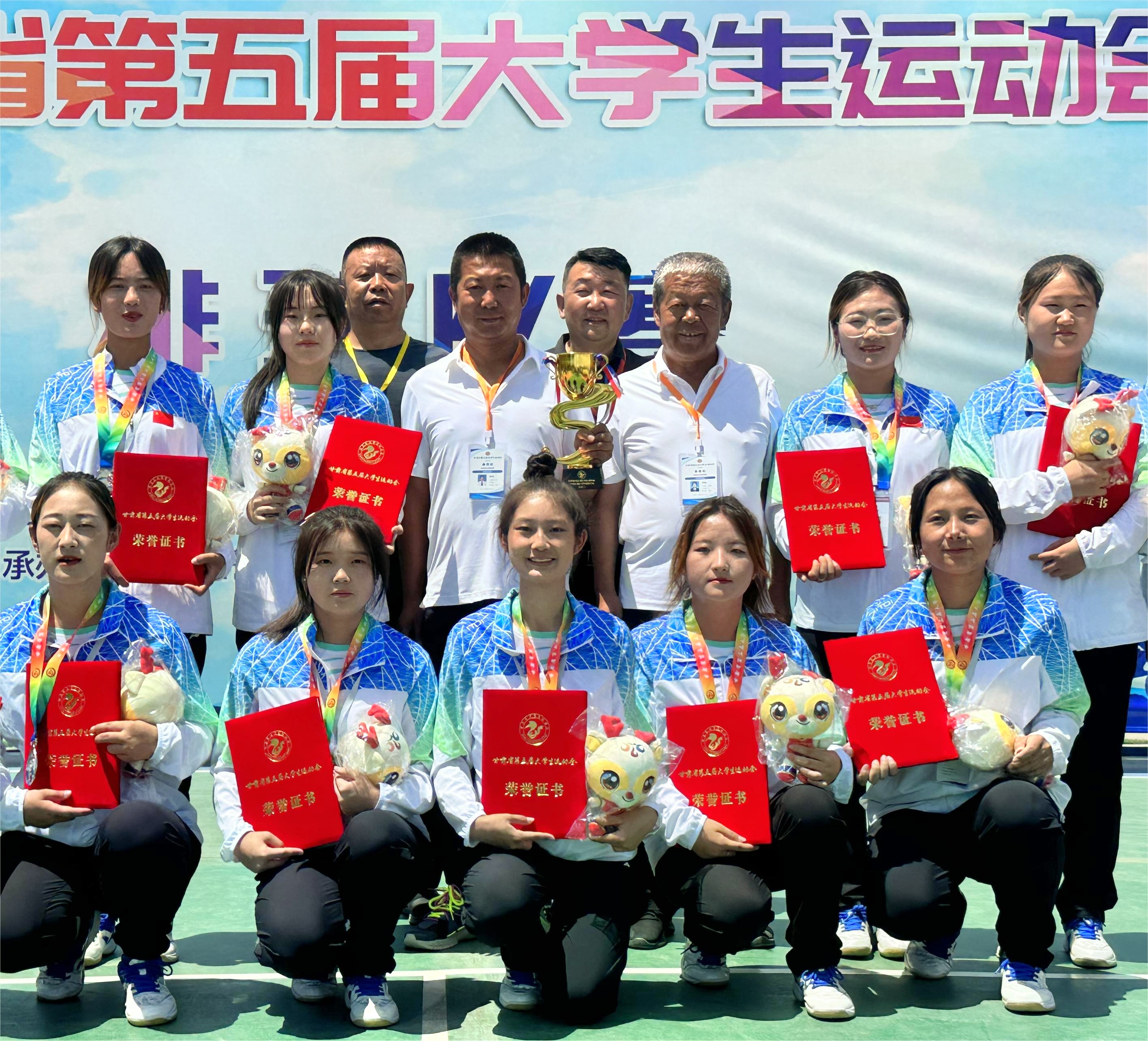 7月29日,甘肅省第五屆大學(xué)生運(yùn)動(dòng)會(huì)在甘肅省警察職業(yè)學(xué)院落下帷幕。我校代表團(tuán)參加了排球、籃球、健美操、田徑4個(gè)項(xiàng)目比賽,喜獲2金4銀3銅,學(xué)校獲優(yōu)秀組織獎(jiǎng)。