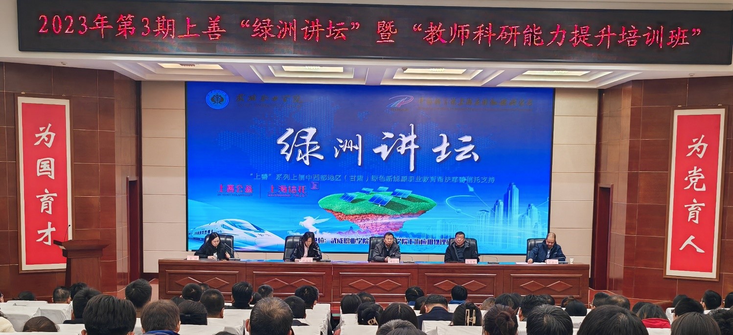 為進一步深入學習貫徹黨的二十大精神,落實中共中央辦公廳、國務院辦公廳印發(fā)的《關于深化現(xiàn)代職業(yè)教育體系建設改革的意見》精神,切實開展“科教融匯、產(chǎn)教融合”,2023年11月10日,武威職業(yè)學院2023年第3期上善“綠洲講壇”學術報告會暨“教師科研能力提升培訓班”在學校菁英廳開講。原中科院上海應用物理研究所黨委書記唐裕華;上海應物所高級教育顧問,中科低碳新能源技術學院院長楊存忠教授;“上善”慈善信托公司總經(jīng)理蔡汝溶;核工業(yè)第八研究所王伊馨博士、王夢千博士、何炳余博士、王后全博士;上海應物所副研究員,中科低碳新能源技術學院院長助理金嬋博士;全體在家校領導出席此次報告會,教師代表共200人參會,此次報告會由武威職業(yè)學院黨委副書記翟存祥教授主持。