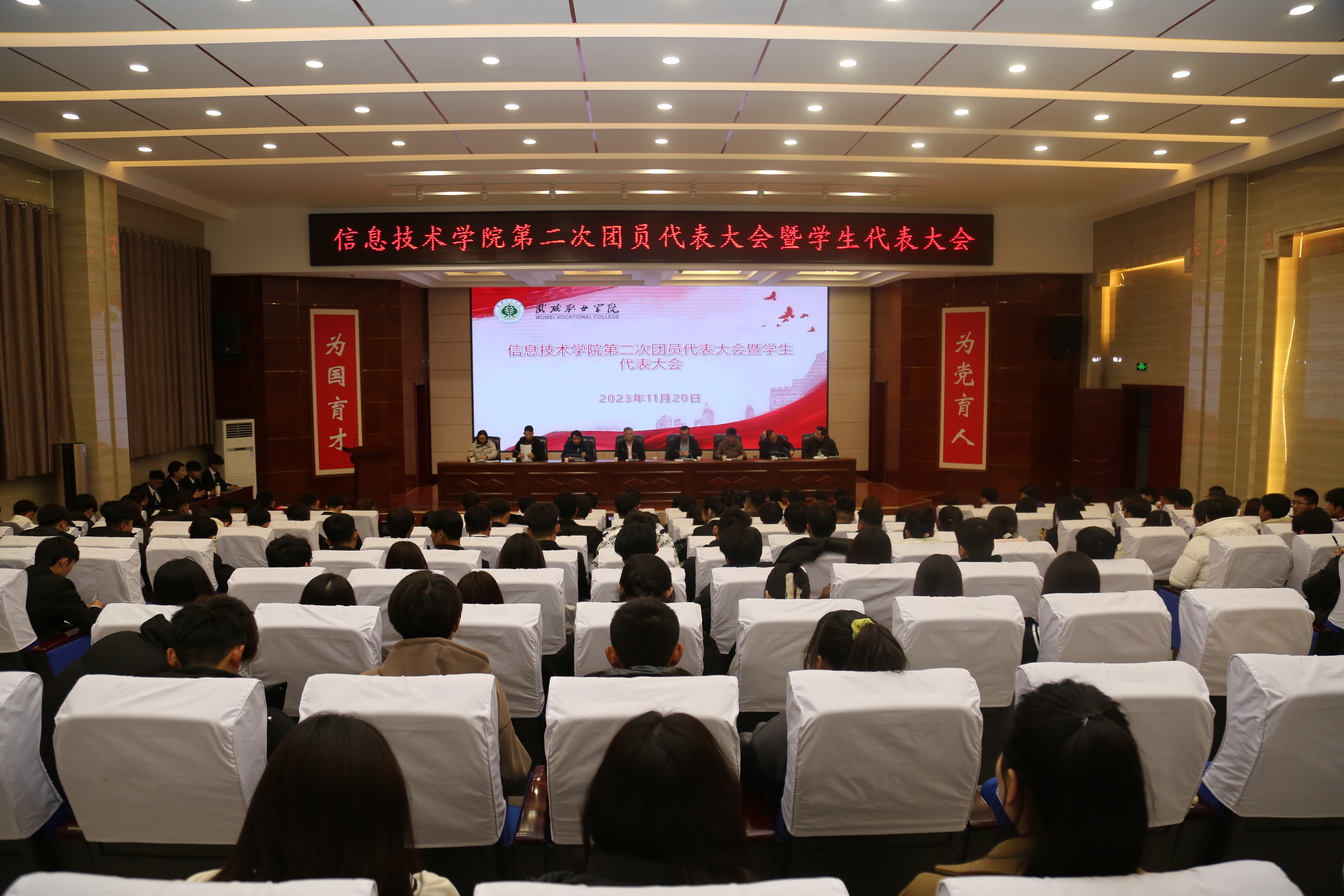 2023年11月20日,信息技術(shù)學(xué)院第二次團(tuán)員代表大會(huì)暨學(xué)生代表大會(huì)在菁英廳隆重召開(kāi)。信息技術(shù)學(xué)院黨總支書記潘從明、校團(tuán)委張登海及師生代表共200余人參加會(huì)議。