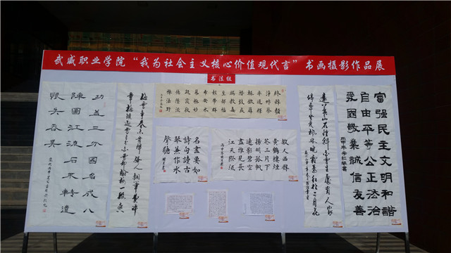 本次大賽自4月啟動以來,共收到來自全院學(xué)生的370余件作品,分為軟筆書法、硬筆書法、繪畫、攝影、手工五大類。經(jīng)過篩選有137件作品進入復(fù)賽,作品緊扣社會主義核心價值觀主題,以生動的藝術(shù)形象、藝術(shù)形式展示社會主義核心價值觀。院團委邀請人文教育藝術(shù)系的藍明東、祁小剛、趙向峰、薛媛、蘆曉鵬教師組成評審小組,對參賽作品分組評審,評選出一等獎4名,二等獎7名,三等獎9名,優(yōu)秀獎15名。獲獎作品在學(xué)院大學(xué)生活動中心、武威職業(yè)學(xué)院團青微信公眾平臺同時展出。