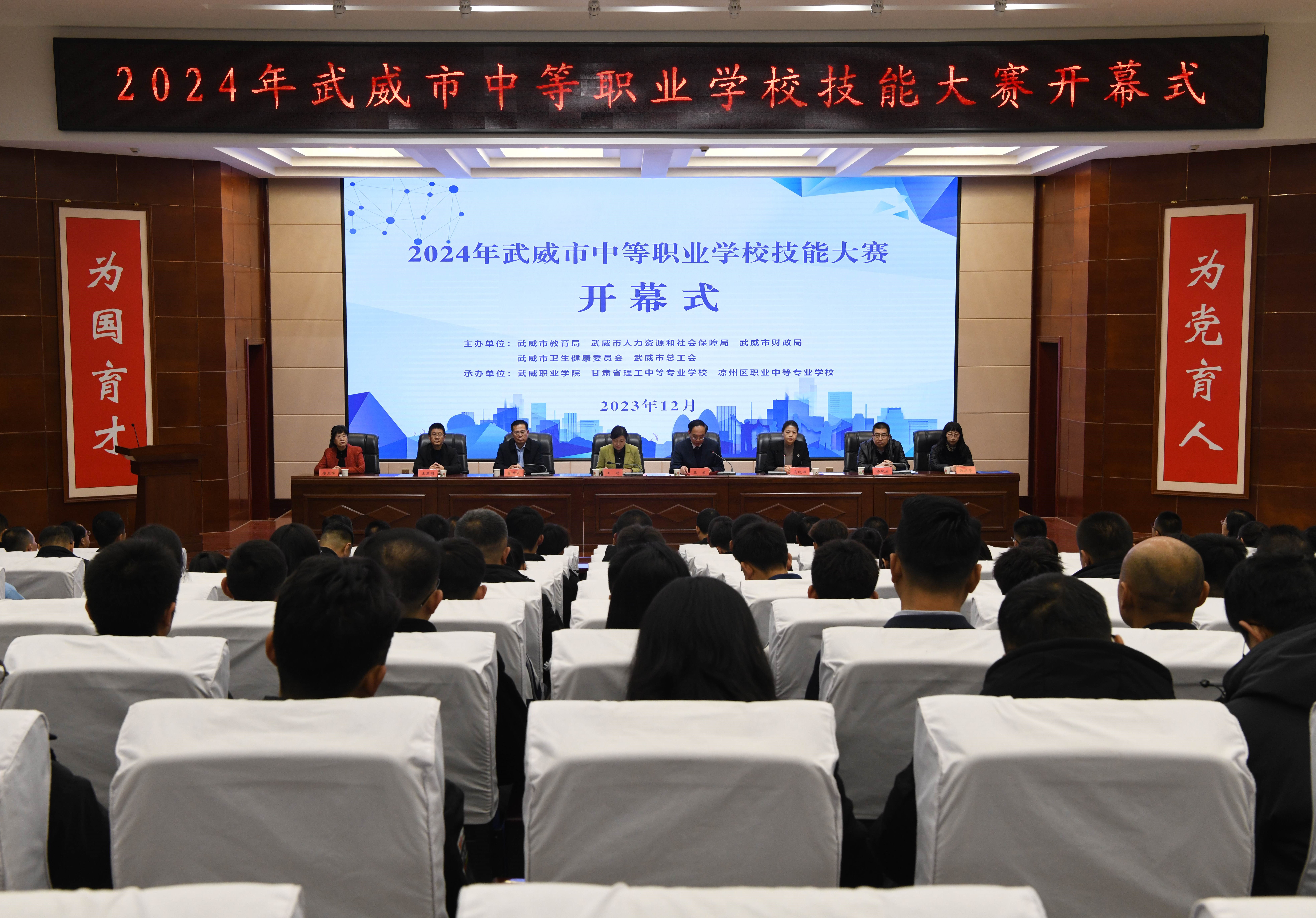 技能大賽展風(fēng)采,工匠精神筑夢(mèng)來(lái)。12月4日,由市教育局、市人社局、市財(cái)政局、市衛(wèi)生健康委、市總工會(huì)聯(lián)合舉辦的2024年武威市中職學(xué)校技能大賽開幕式在我校菁英廳舉辦。