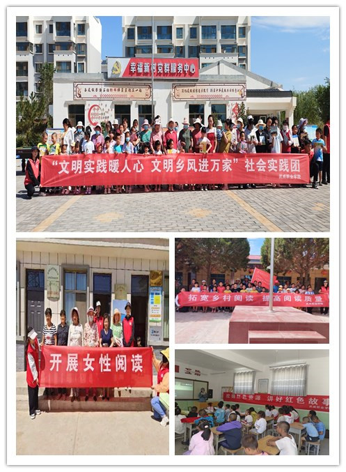 “文明實踐暖人心 文明鄉(xiāng)風(fēng)進萬家”社會實踐團深入涼州區(qū)高壩鎮(zhèn)、長城鎮(zhèn)、永昌鎮(zhèn)、吳家井鎮(zhèn),古浪縣綠洲小鎮(zhèn),武威市社會福利院等地開展“拓寬鄉(xiāng)村閱讀 提高閱讀質(zhì)量”“圖書漂流”“開展女性閱讀”四項主題活動,讓廣大農(nóng)民群眾親身感受文化的魅力,提升農(nóng)村女性文化素養(yǎng),用紅色事跡啟迪人生,促進農(nóng)村文化建設(shè)、道德建設(shè)、倫理建設(shè)和文明鄉(xiāng)風(fēng)建設(shè)。