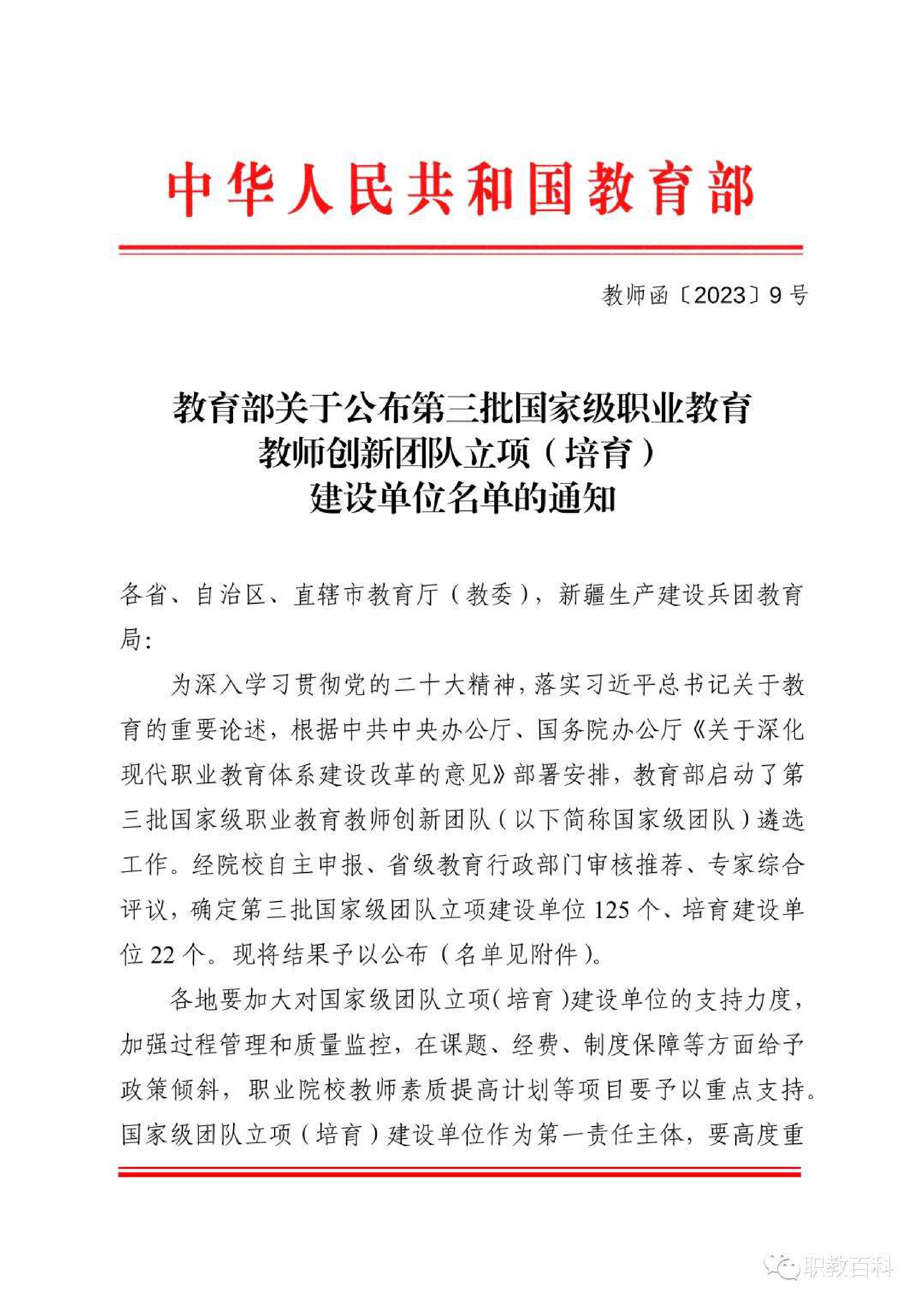 近日,教育部公布了《教育部關(guān)于公布第三批國家級職業(yè)教育教師創(chuàng)新團隊立項(培育)建設(shè)單位名單的通知》(教師函〔2023〕9號),學(xué)院黃述杰教授主持的“光伏工程技術(shù)”專業(yè)教師團隊成功入選。這是學(xué)校首次入選國家級職業(yè)教育教師創(chuàng)新團隊立項建設(shè)單位,實現(xiàn)了學(xué)校教學(xué)團隊“國家級”項目零的突破,也是學(xué)?!半p高”項目建設(shè)和高質(zhì)量發(fā)展中取得的又一項國家級標(biāo)志性成果。