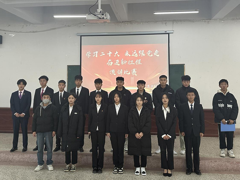 2023年12月24日,在明德樓階梯教室,我院舉辦了“學(xué)習(xí)二十大,永遠跟黨走,奮進新征程”誦讀比賽。黨的二十大是在全黨全國各族人民邁上全面建設(shè)社會主義現(xiàn)代化國家新征程、向第二個百年奮斗目標(biāo)進軍的關(guān)鍵時刻召開的一次十分重要的大會,取得了一系列事關(guān)新時代中國特色社會主義事業(yè)長遠發(fā)展的重大成果,是一次高舉旗幟、凝聚力量、團結(jié)奮進的大會。繼續(xù)學(xué)習(xí)黨的二十大精神,進一步堅定跟黨走的理想信念,立志做有理想敢擔(dān)當(dāng)能吃苦肯奮斗的新時代好青年。