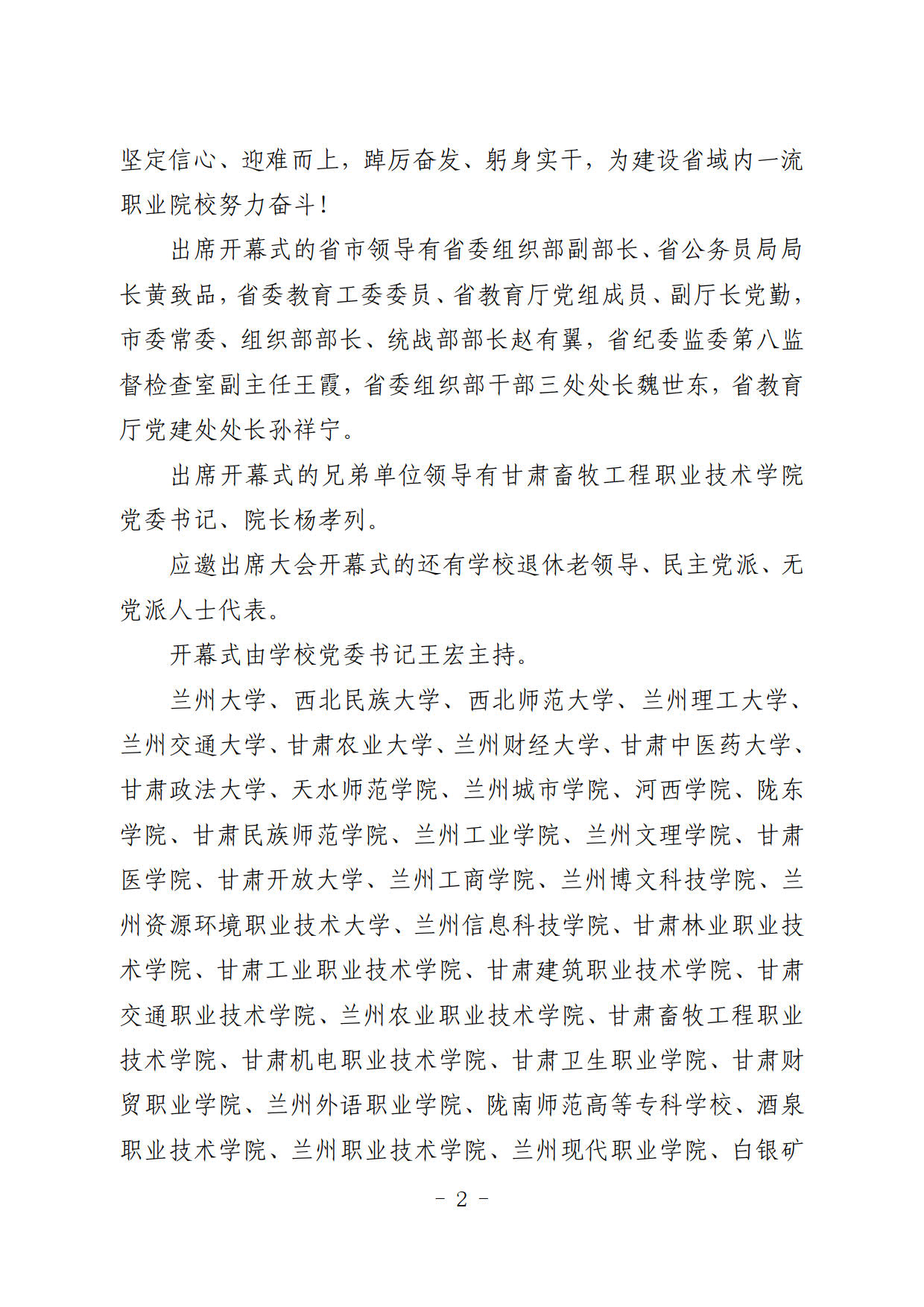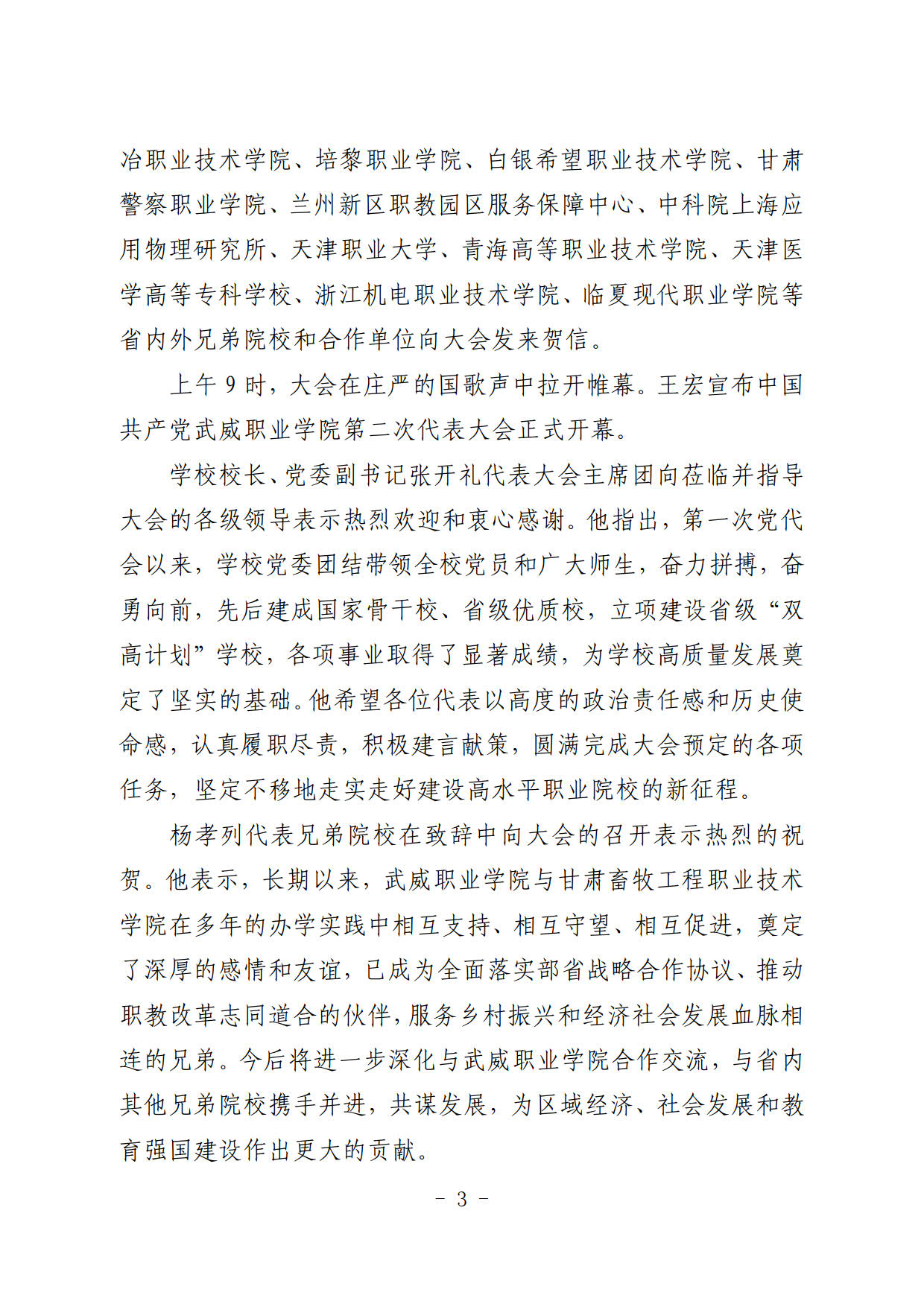 簡(jiǎn)報(bào)第34期:中國(guó)共產(chǎn)黨武威職業(yè)學(xué)院第二次代表大會(huì)開(kāi)幕